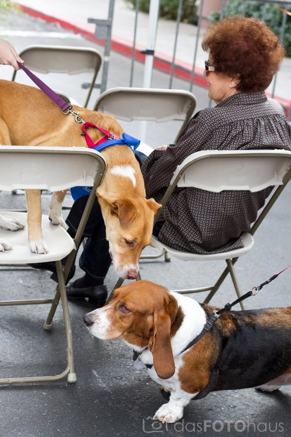 8) Sunny’s first appearance as a stunt devil! This past Sunday was one of RESCUE’s main annual fundraisers: Beauty to the RESCUE! The event is held at a beauty salon in the Biltmore area, where all of the proceeds that day are donated to RESCUE. In the parking lot they have different vendors set up, as well as live music, doggie haircuts, & food. Sunny alternated between cuddling in the corner on a quiet bench with me and performing stunts on the folding chairs! She kept climbing to sit on any human chair she could, and then racing across all of the chairs as fast as she could! She was making me very nervous since they were folding chairs– eek! I should have known to trust her though, as she proved herself to be a very brave stunt dog! Here are some random pics from the event.