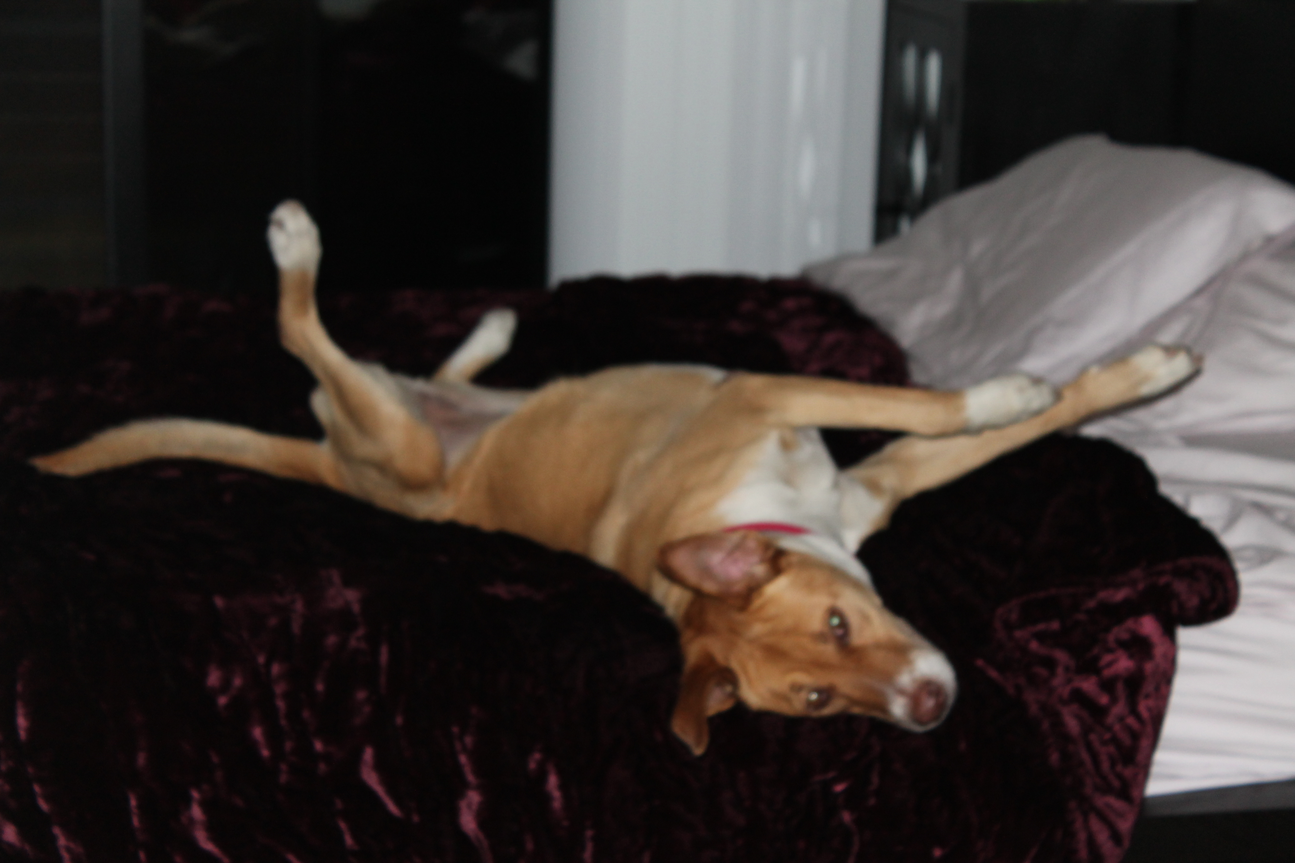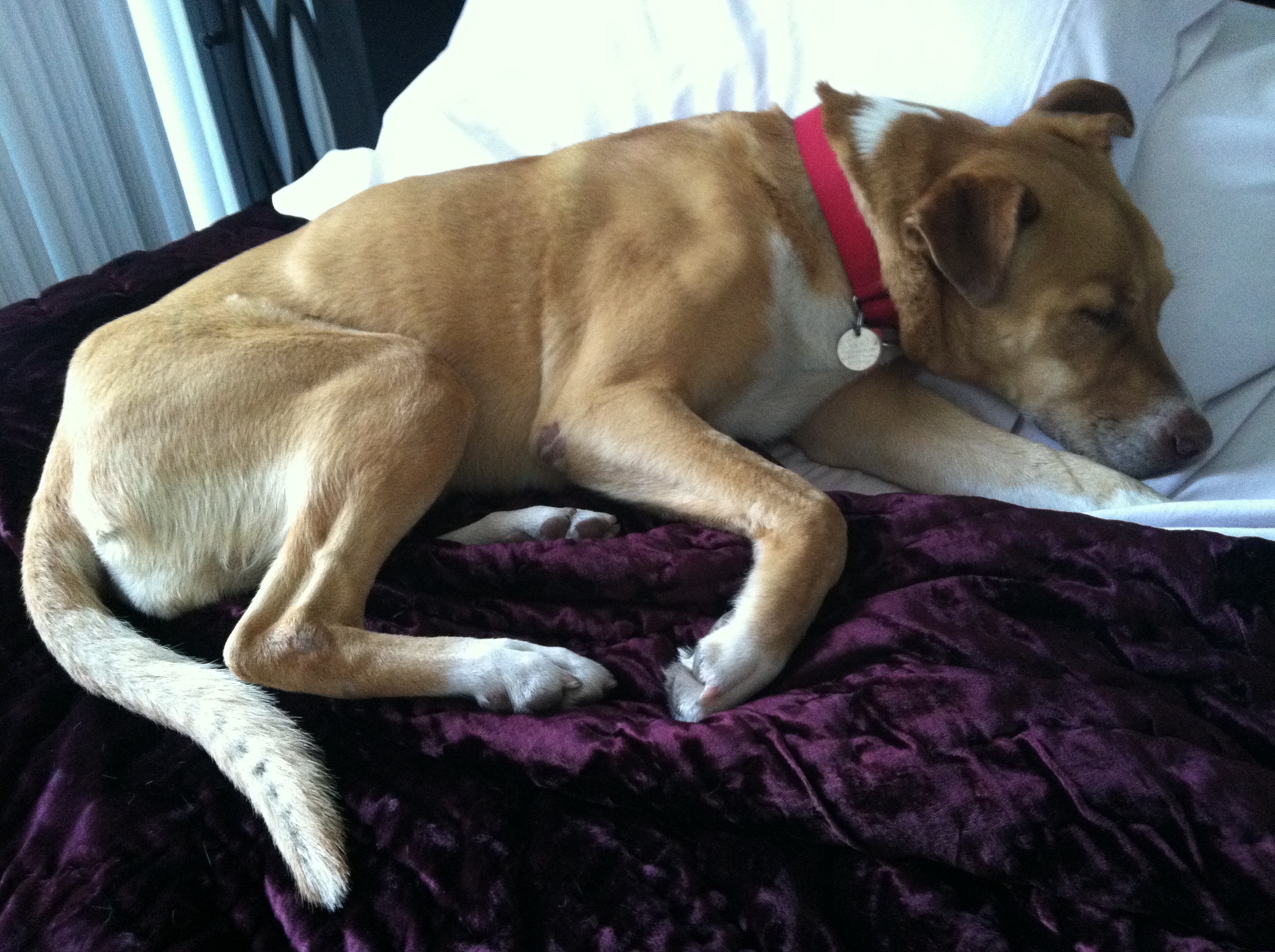 7) Sunny’s first sleepover! Now this is a big one. I had the wonderful pleasure of having a sleepover with my gorgeous Miss Sunny this weekend! She was an absolute angel. After hogging the bed all day, when I told her it was bedtime, showed her where her nightlight, food & water were, she immediatley hopped on the couch & was silent all night. I found her in the morning, around 6:30AM, waiting very quietly for me to wake up. What a perfect dog! She started thumping her tail wildly on the couch the second she saw me; she had been waiting ever so patiently for me to wake up!