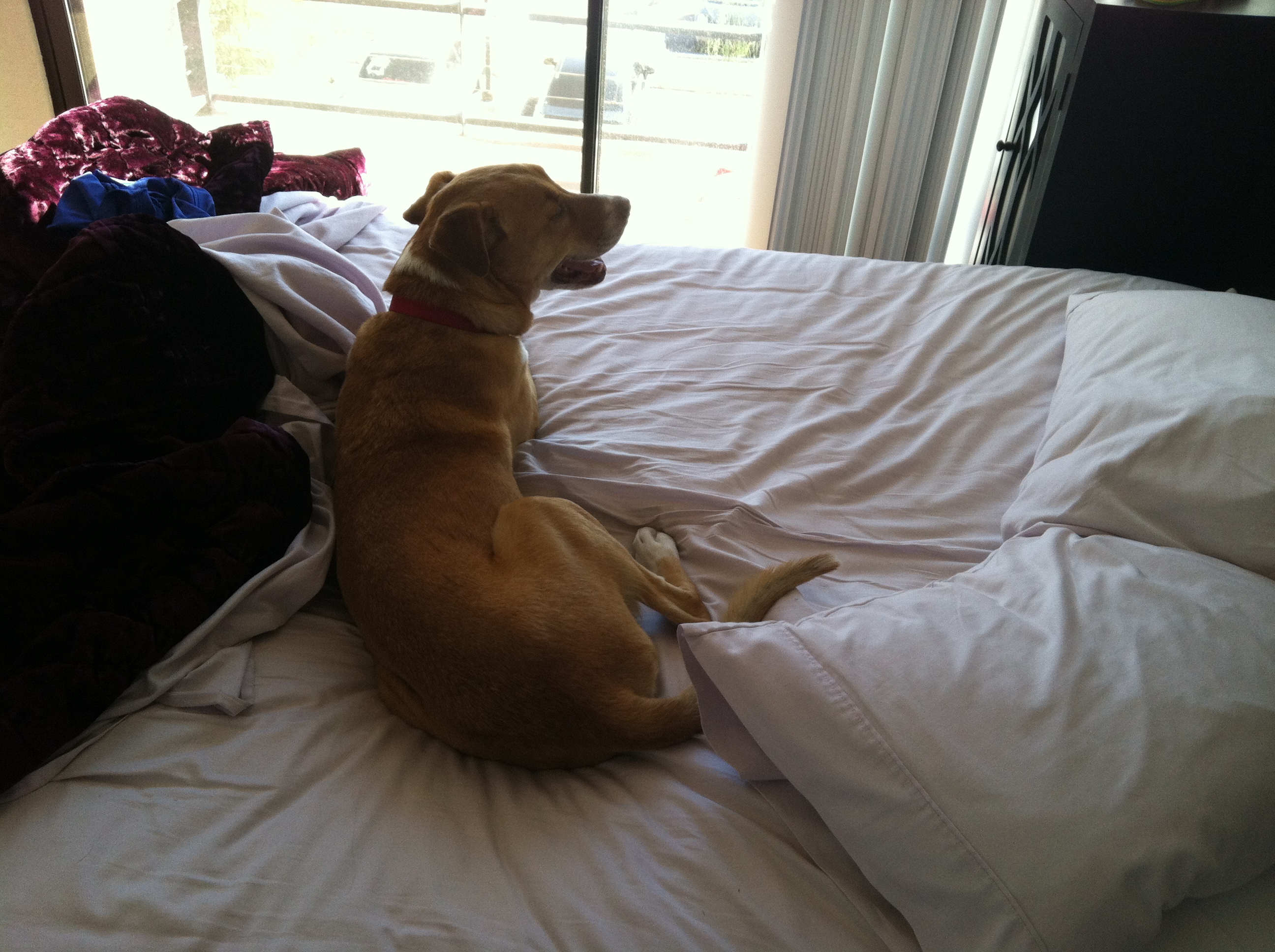 Well, even without going into detail on the perfect family & second-runner up family I met for Sunny….I still must have jinxed it. Despite leaving Pet Club with a leash fitted to Sunny (it was purple, our favorite color), food, a dog bed, bones & toys….the perfect family never submitted an application for her. Nor did the second runner-up family, who visited Sunny two days in a row and told me after the second time that they were going home to submit the app. I was devastated for Sunny. I’m glad I didn’t tell her that a family was soon coming for her when I dropped her off previously at dog daycare. It made me feel better that she didn’t know, and had instead just been looking forward to seeing me in few days, when it was the weekend again. Just like I look forward to every weekend with her! 🙂