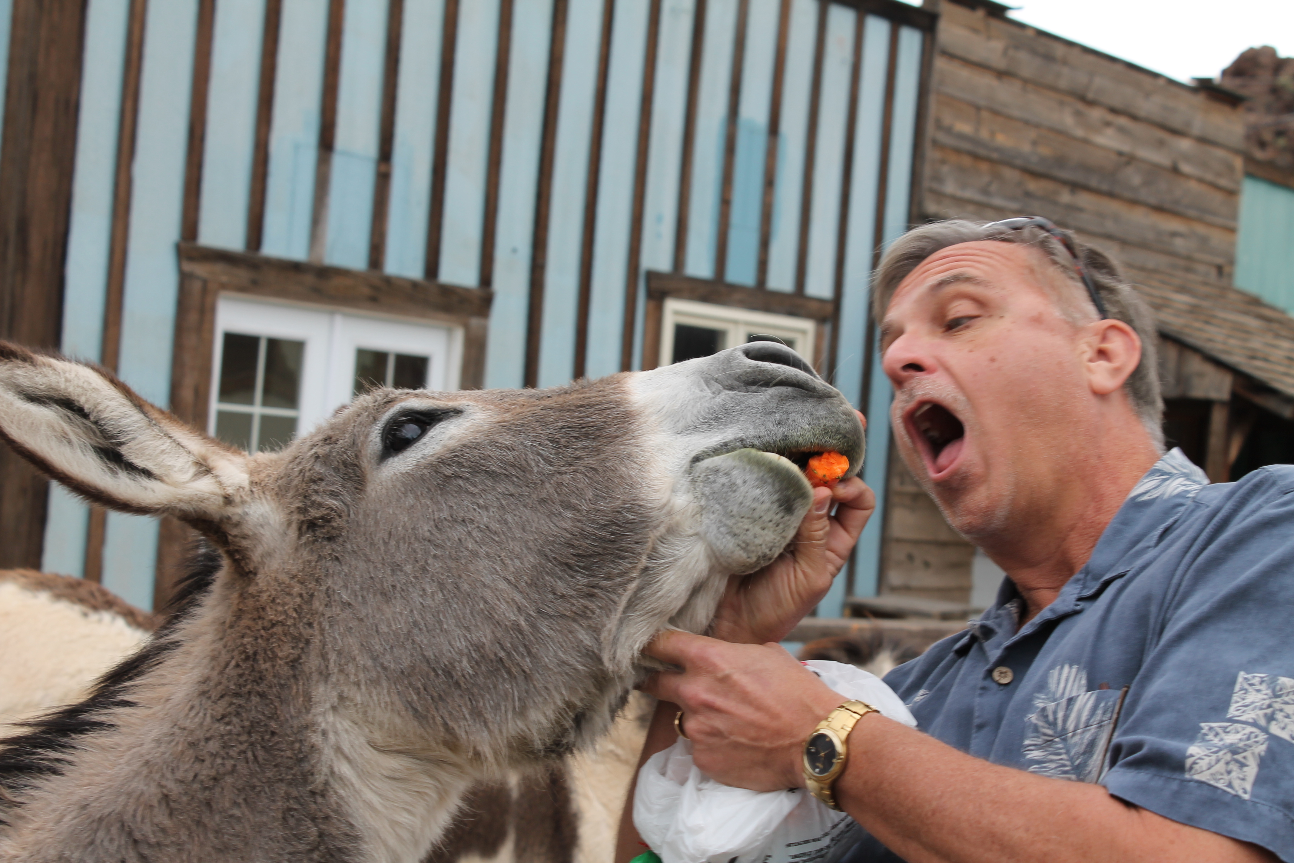 The next morning, my Uncle Duke went to run the 5K race, while I slept. I felt bad for not running with him, but I never get to sleep in & I was wiped out from StandDown. I made it up to him by spending the whole day with him, my Aunt Leslie, my Aunt Linda, and my Uncle Dave. We went to Oatman, AZ, a teeny little town…..to feed donkeys.