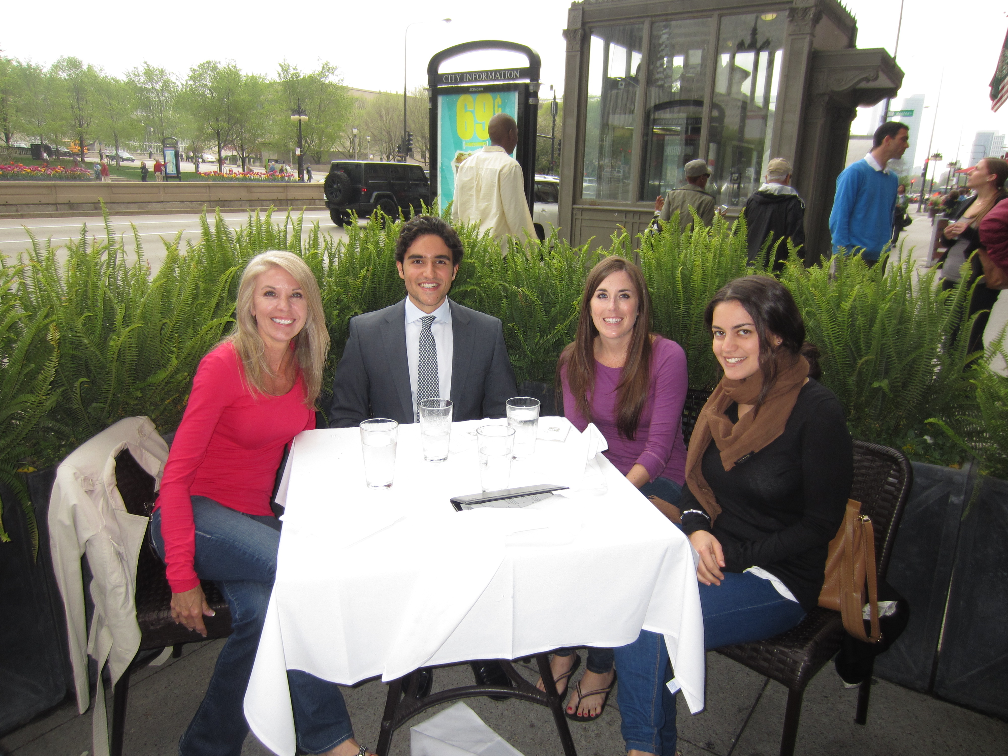 We met for lunch right on Michigan Avenue in the heart of the city! My mom came to lunch too, along with Firas’ girlfriend, Elena. (Elena is from Italy so she was able to give us some great tips for our pending trip!) It was really awesome to meet Elena in person– after knowing of her for a while–, and it was also cool for my mom to meet someone she has heard about, but not met either! We had so much fun getting caught up, sharing stories with my mom & Elena, talking about future plans, etc. I don’t think I stopped smiling the whole time, and I couldn’t imagine a more fun, more perfect start to my big vacation.