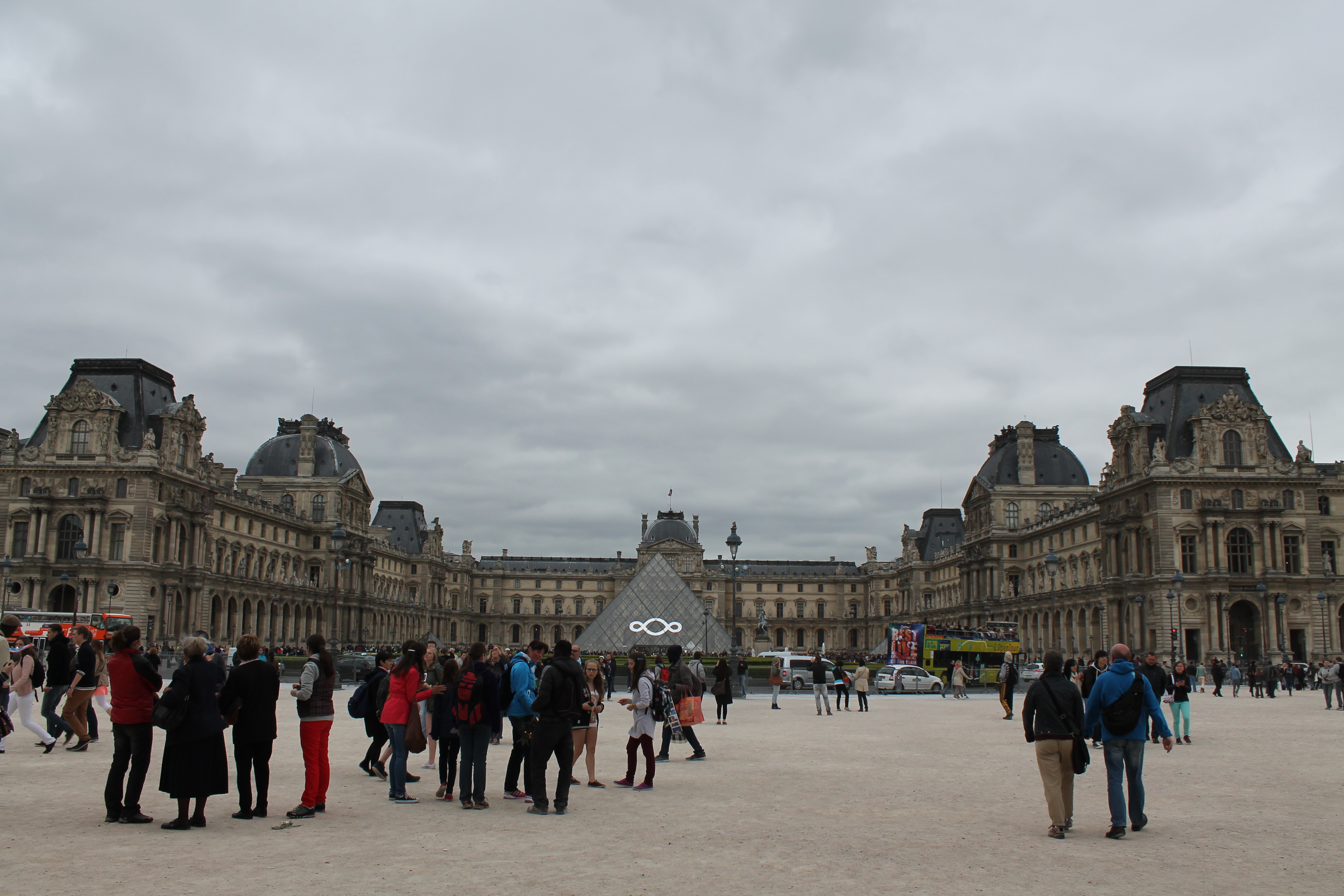 We hoped quickly on their S-metro and ended up at Les Halles, a huge transportation hub near the Louvre museum and just a hop-skip-and-a-jump away from our quaint hotel. Since we couldn’t check in, we tried to ignore the fact we had been in the same clothes for 24+ hours (I was now at like 48 hours with just 4 hours of sleep) and headed out to explore the sites.