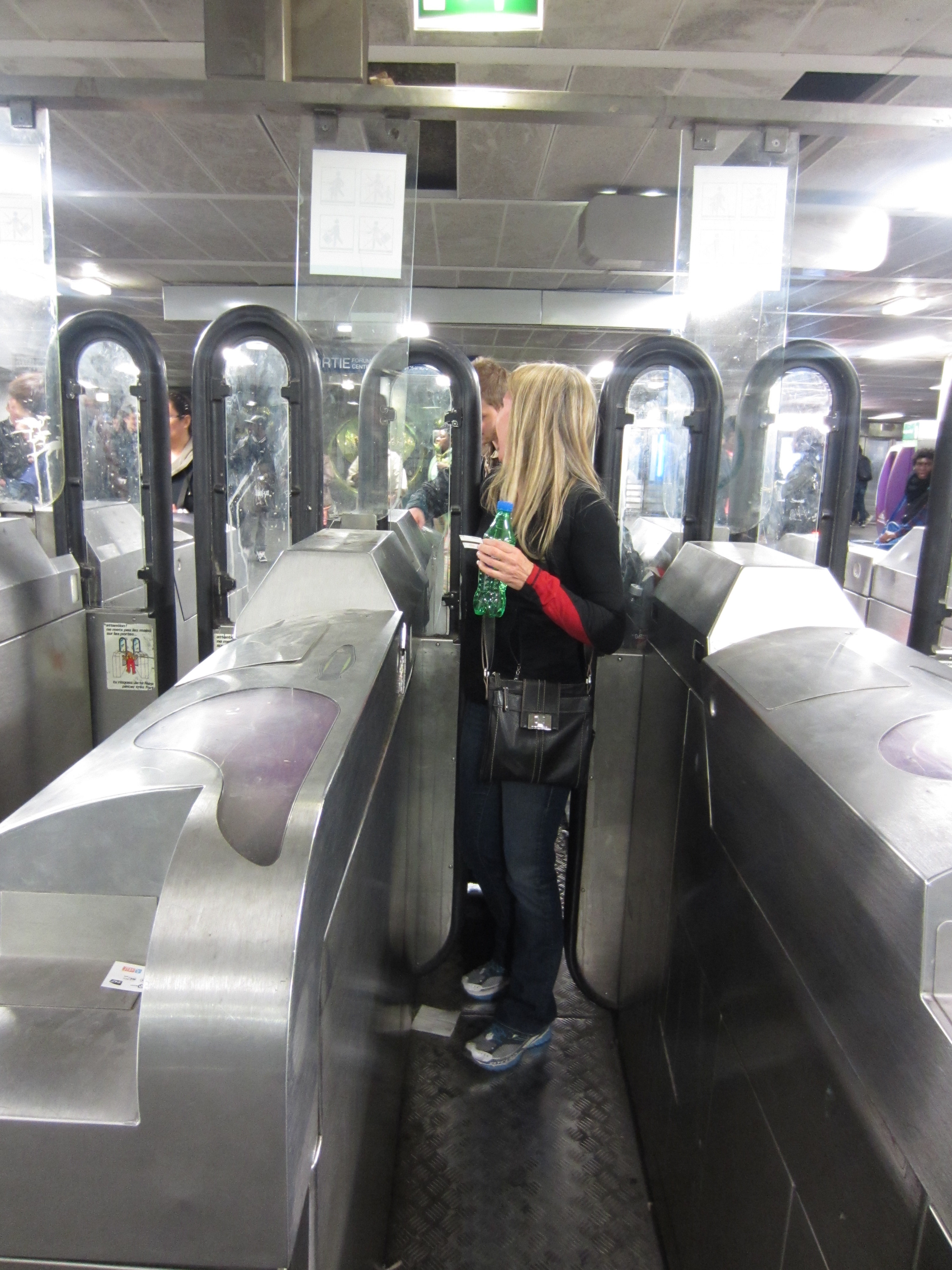 What is going on here, you ask? Oh, you know, Mom’s just stuck (literally STUCK) in the metro ticket machine! I’m not sure which of you out there has been stuck inside a metro ticket machine in Paris, but for those of you that have, you know that once stuck….you can’t. get. out.
