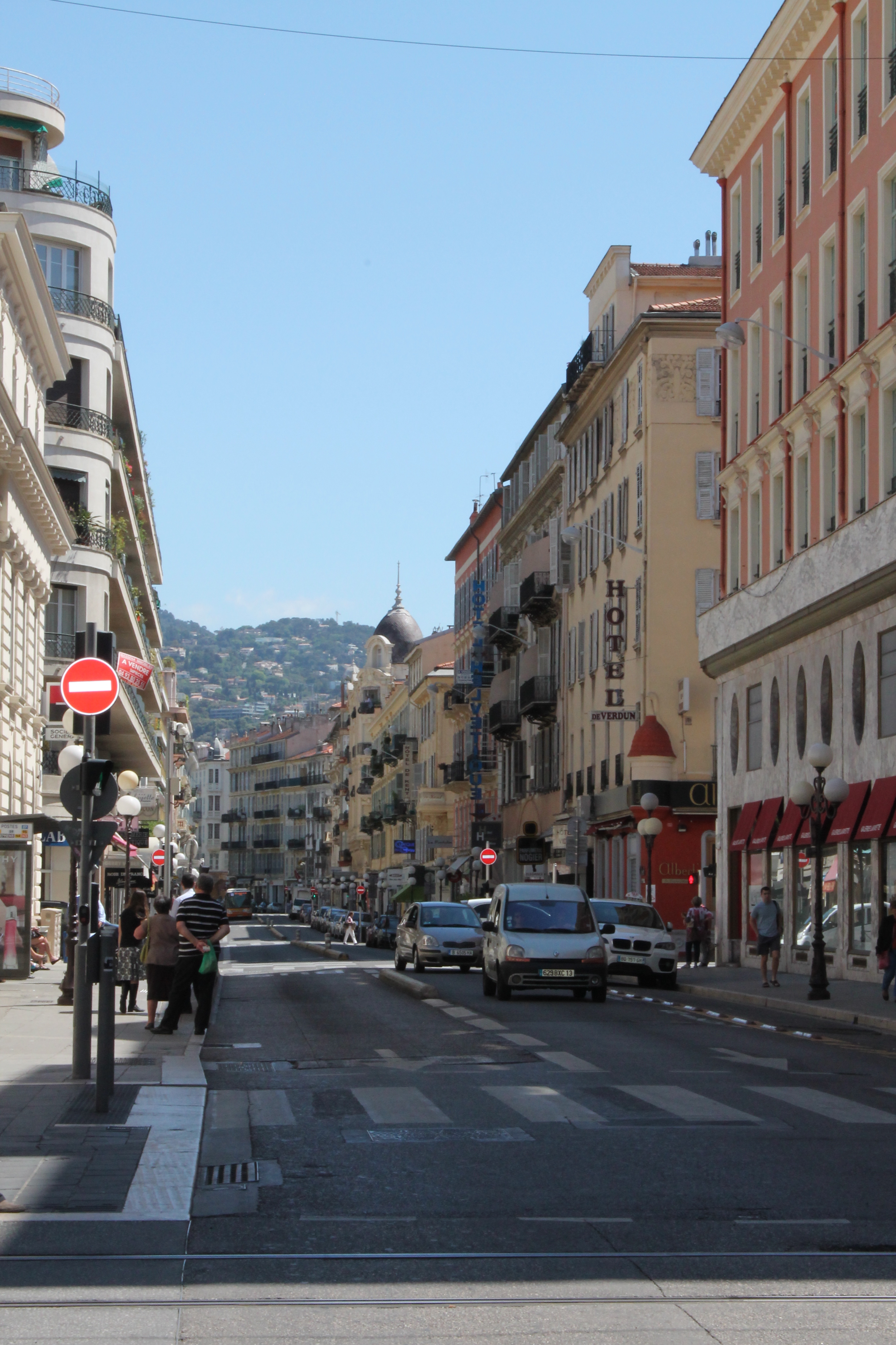 After our overnight train ride, we arrived in Nice around 10AM and took a 20-ish minute walk to our hotel. We literally walked RIGHT passed it and got a bit lost, walked in circles around the same place (Massena Square), and finally looked up to find ourselves right underneath the sign. Cool.