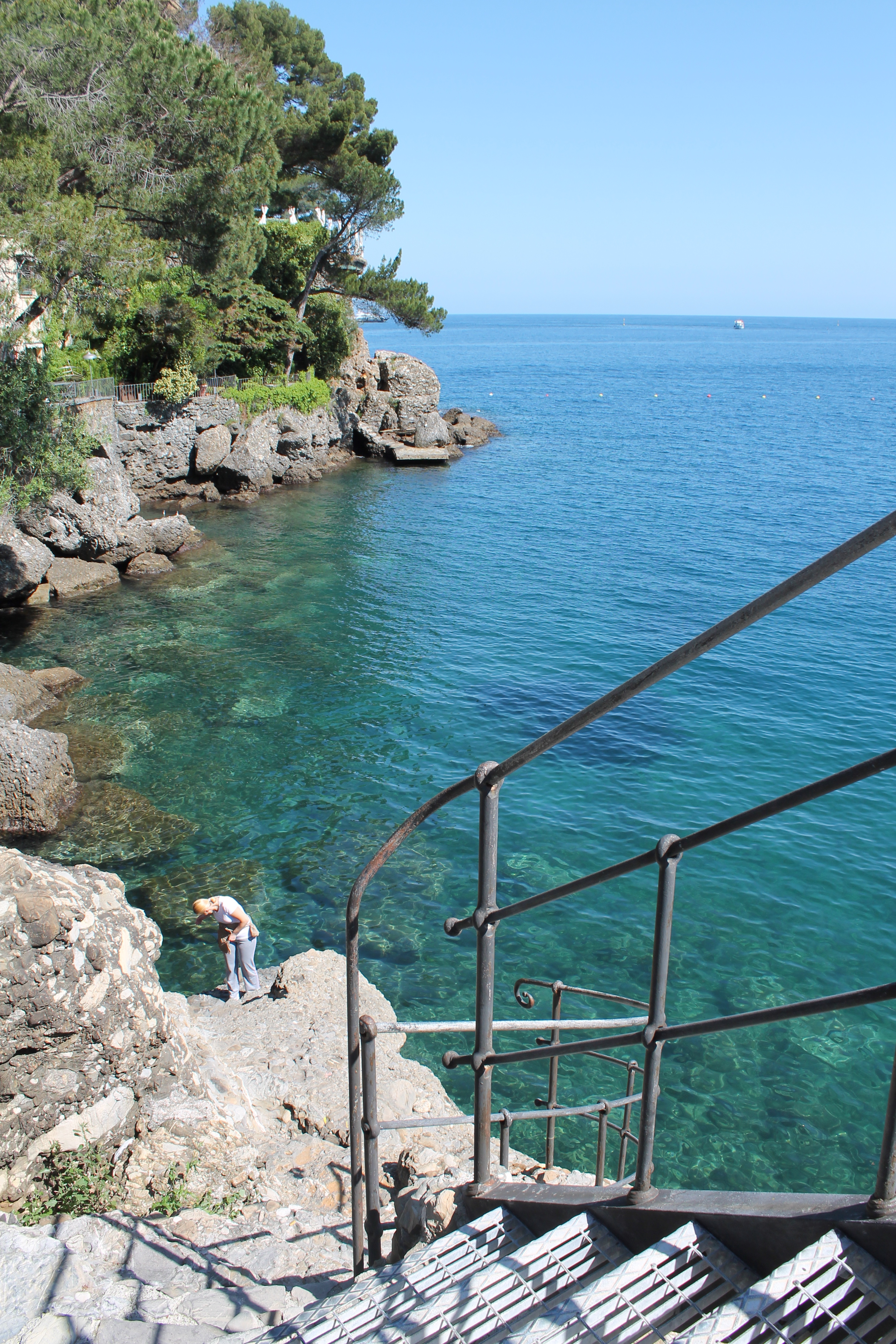 While we had taken a bus from Santa Margherita, Italy (the closest train stop) to Portofino, I had seen SO many awesome vantage points along the way, that my mom and I agreed to walk partway back, along the route. Flashforward two hours later and we’re starving (that seems to have happened to us a lot, huh?), my mom has gotten poison ivy, my own knees can no longer walk any further (you have to remember this was day 6 or 7 of 10+ hours on our feet each day), and we are still 100% happy that we decided to walk back. The WHOLE way back. (Wait, you’re 100% happy, right mom? Not just like 50%? Right? Hehe 🙂 )
