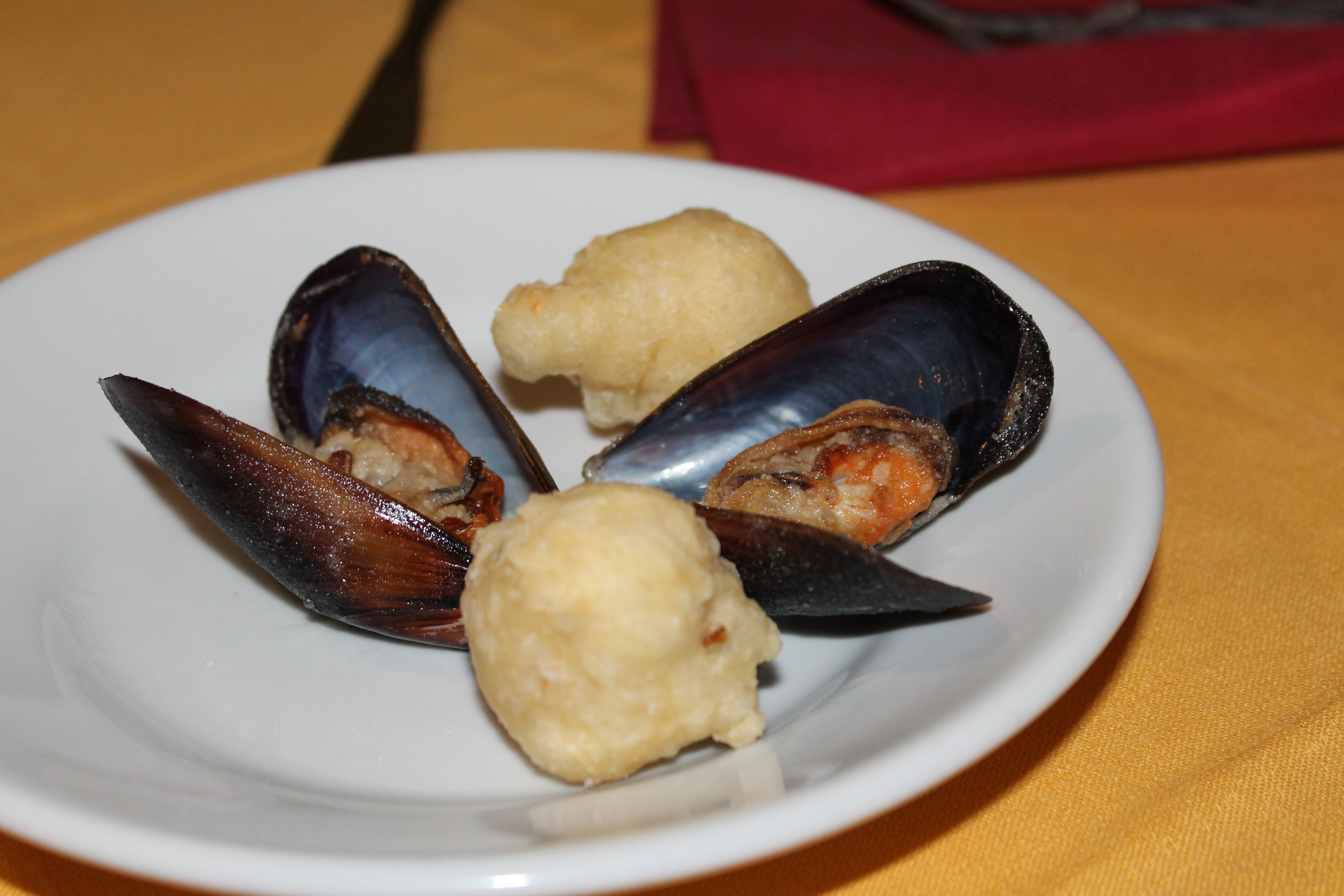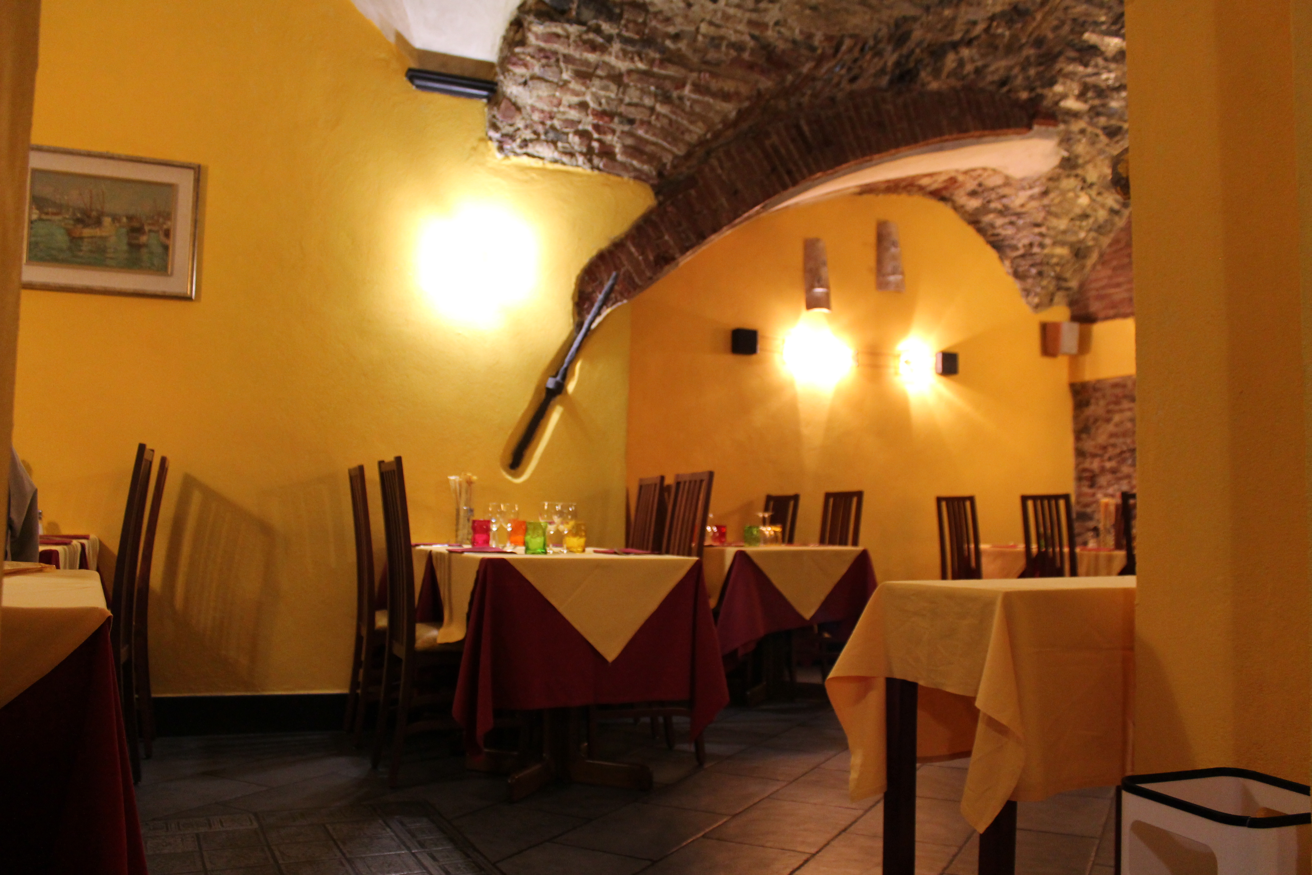Mad props to my mom for finding the restaurant! As I mentioned, she planned our trip to Portofino & also researched what to do in Genova. (“See Christopher Columbus statue. The end.”) Included in her research, she found reviews for this restaurant, the name of which I absolutely cannot recall right now! 😦 When we first found it, after an hour of creepy men leering at us as we wandered around, it was down a sketchy back alley with a ghetto neon sign. I felt like I was trying to sneak into a club underage. After walking a bit more and debating what to do, we finally decided to give it a try.