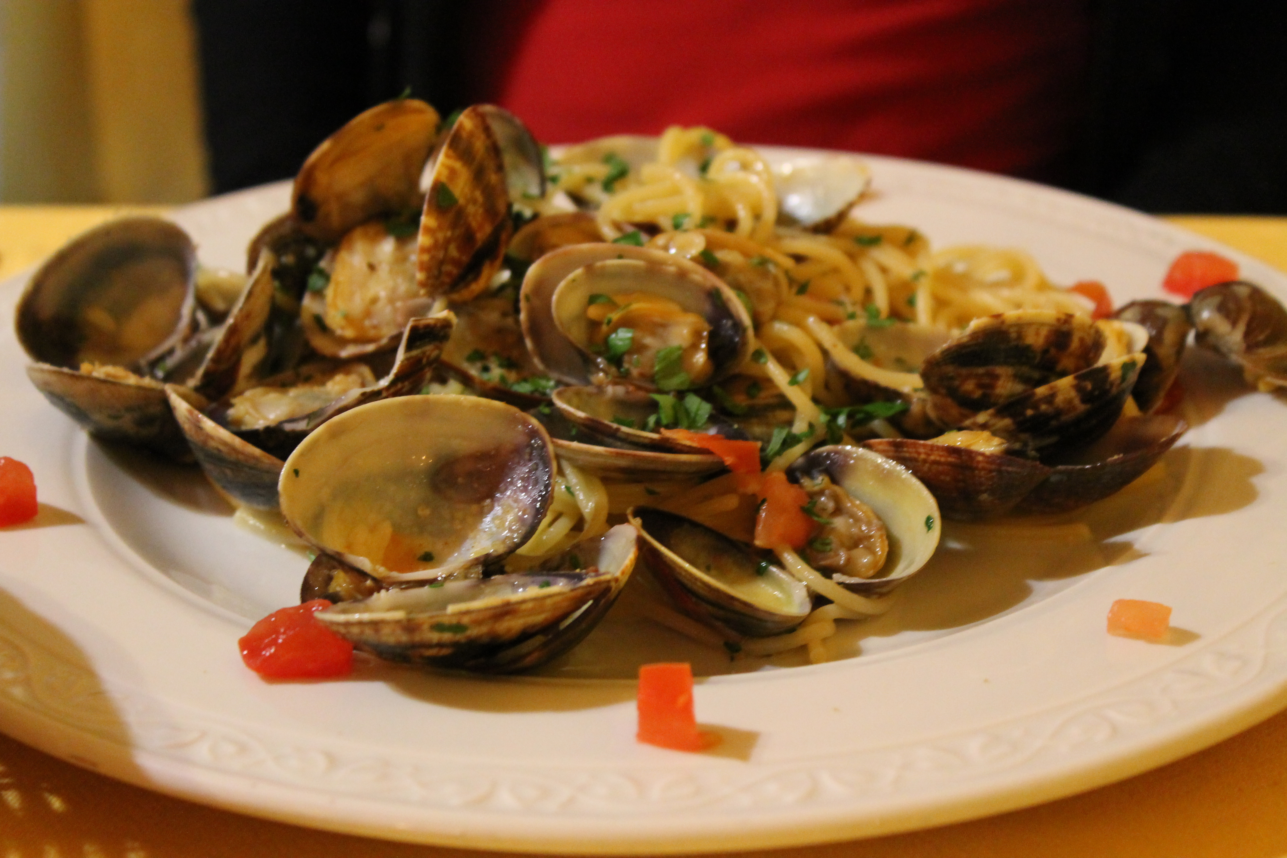 My mom herself, enjoyed her own spaghetti & clams 🙂 Not to mention, the brushcetta was great too! The waiters were all very helpful and kind and, to top it off, we met a very nice, older English gentleman dining solo by us. I had a lovely chat with him about work, school, traveling, hobbies, life in general, etc. My mom on the other hand just nodded & smiled; I thought she was obviously disinterested and just being polite. Turns out she actually can’t understand English accents at all and had no idea what she was saying, so she just nodded and smiled because she had no clue what we were saying! I’d pay good money to try and see her understand anyone from Manchester, given the much stronger accent, since this guy was from London! Anyways, it was cool for me to talk to and andomly connect so well with a stranger, say “good-bye,” and walk away knowing we’d never see each other again, but always have the happy memory of our chat over dinner 🙂