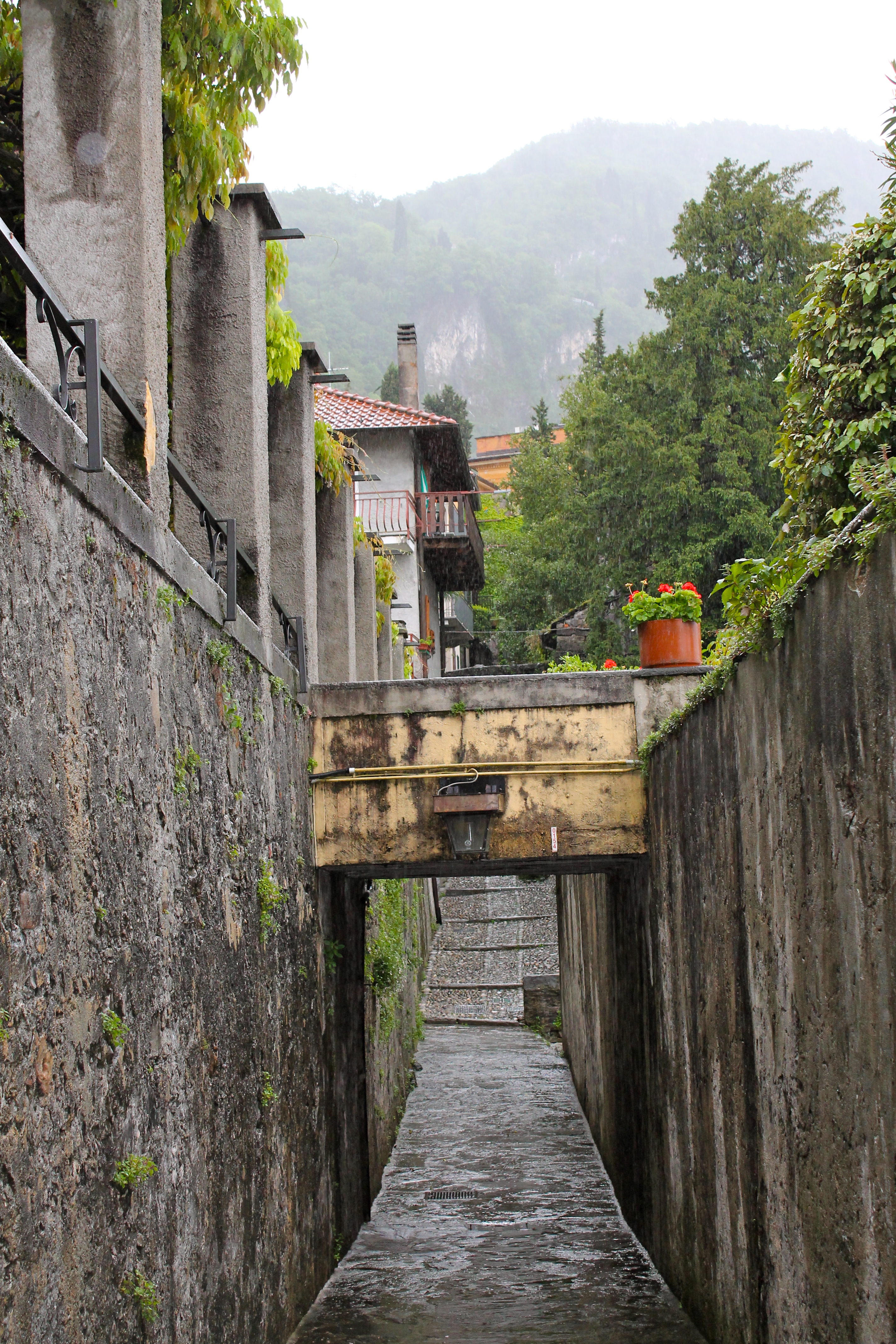 After another quick train ride, we arrived in Varenna, right on the east side of the lake. At first, it was just chilly and drizzling, with a slight wind….but as we walked from the train station toward the center of town, things picked up.