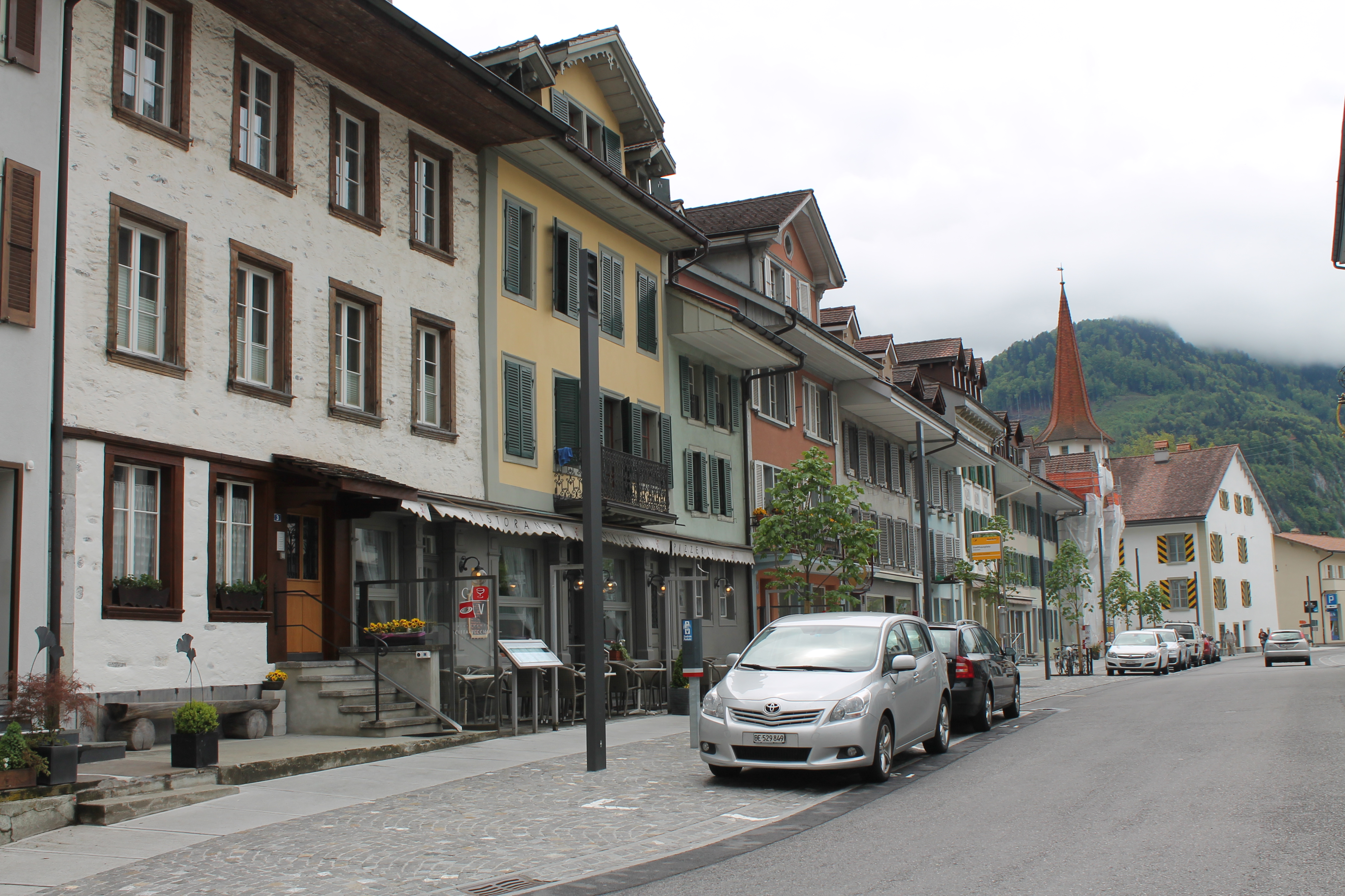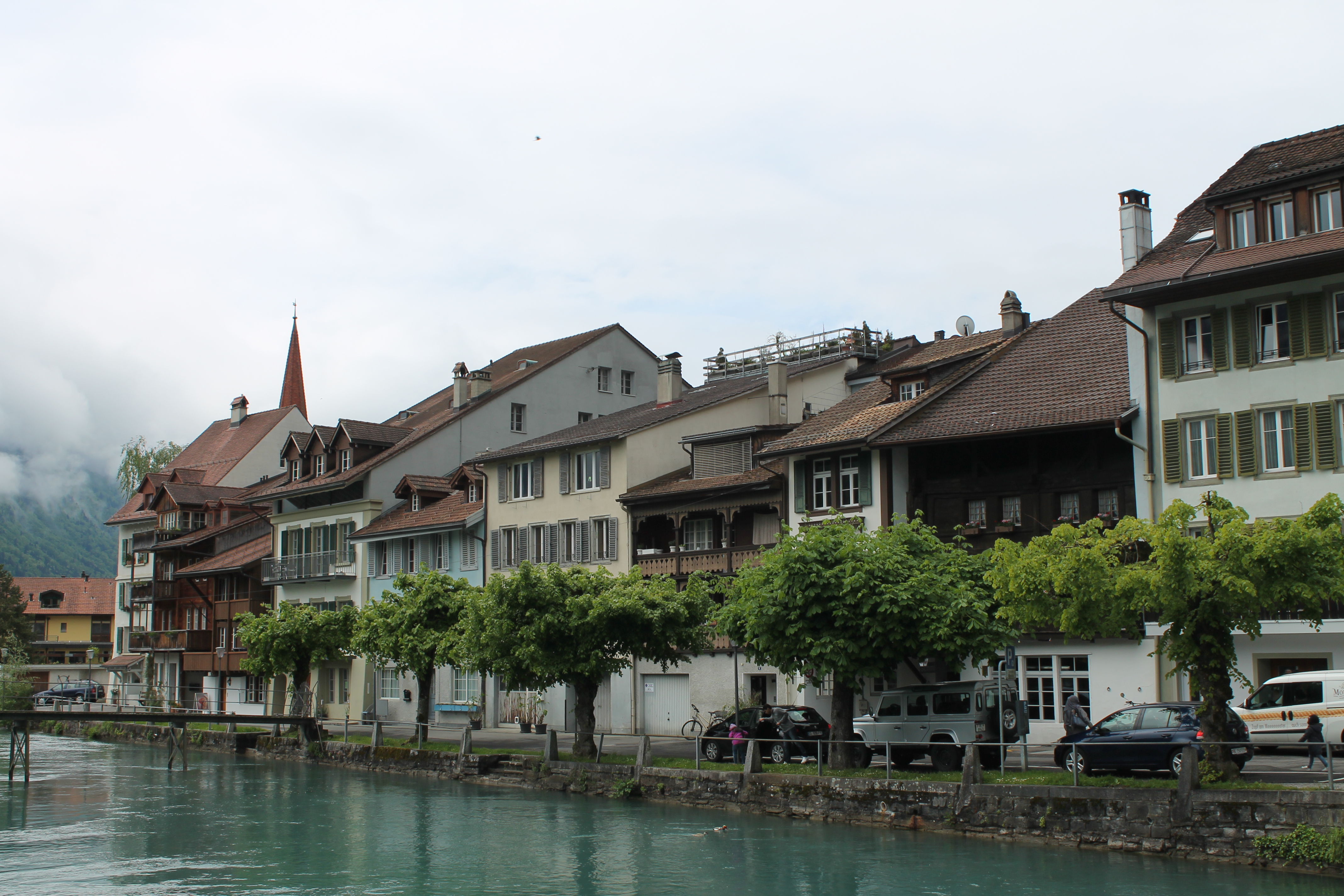 So at 9AM, with rain still splattering us, my mom and I found ourselves chilling in Domodossola, Italy. (At the time, we had no idea if we were in Italy or Switzerland or some other country.) No one seemed to speak English and no one seemed to be able to clarify for us when the next train to Spiez (or the other destinations on the original train) would arrive. Countless others were stuck in the same confused state as we were. Finally, about 90 minutes after our abrupt train kick-off, a new train arrived and we got on. Two train switches later, we finally made it to Interlaken! Switzerland so far hadn’t been so impressive…