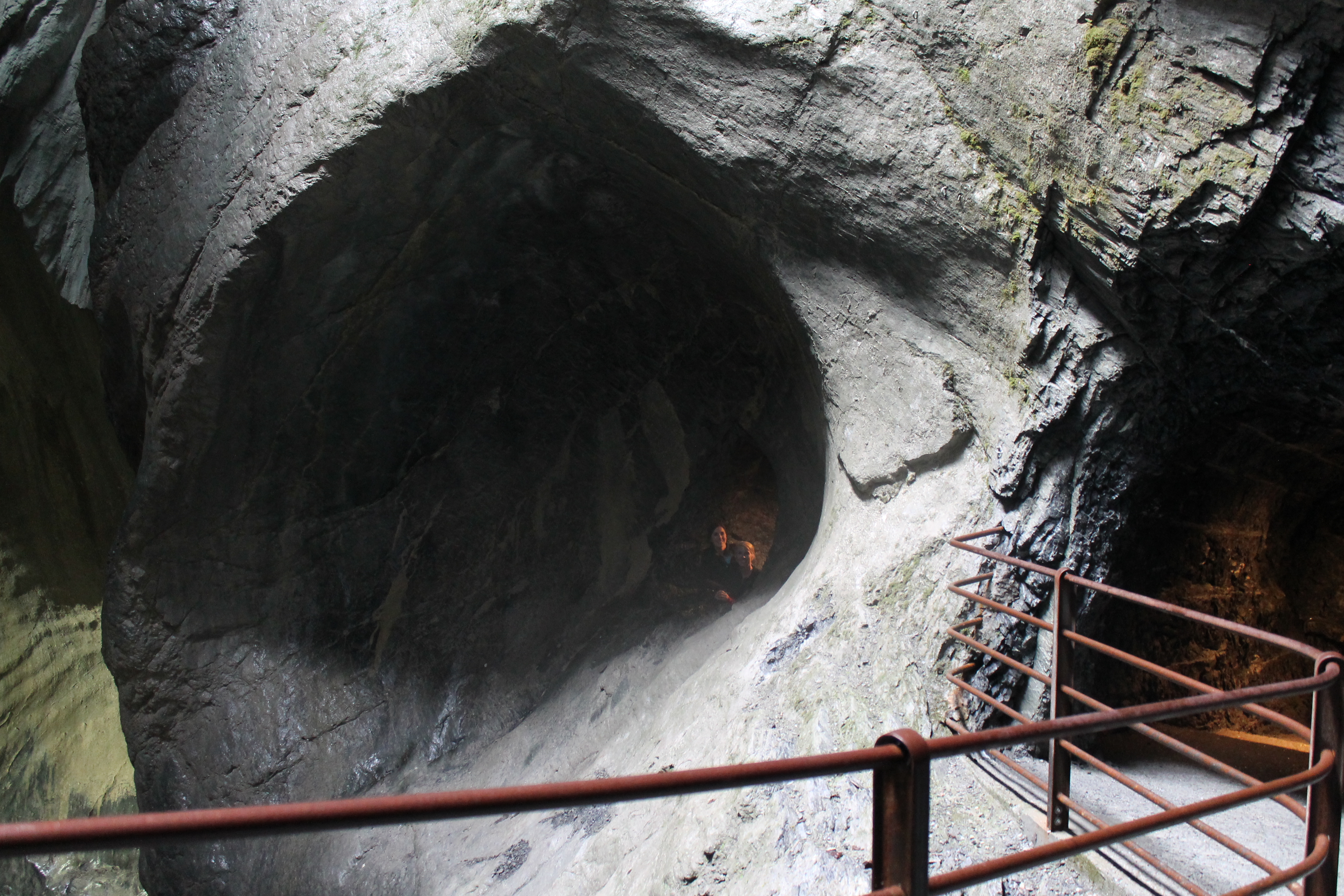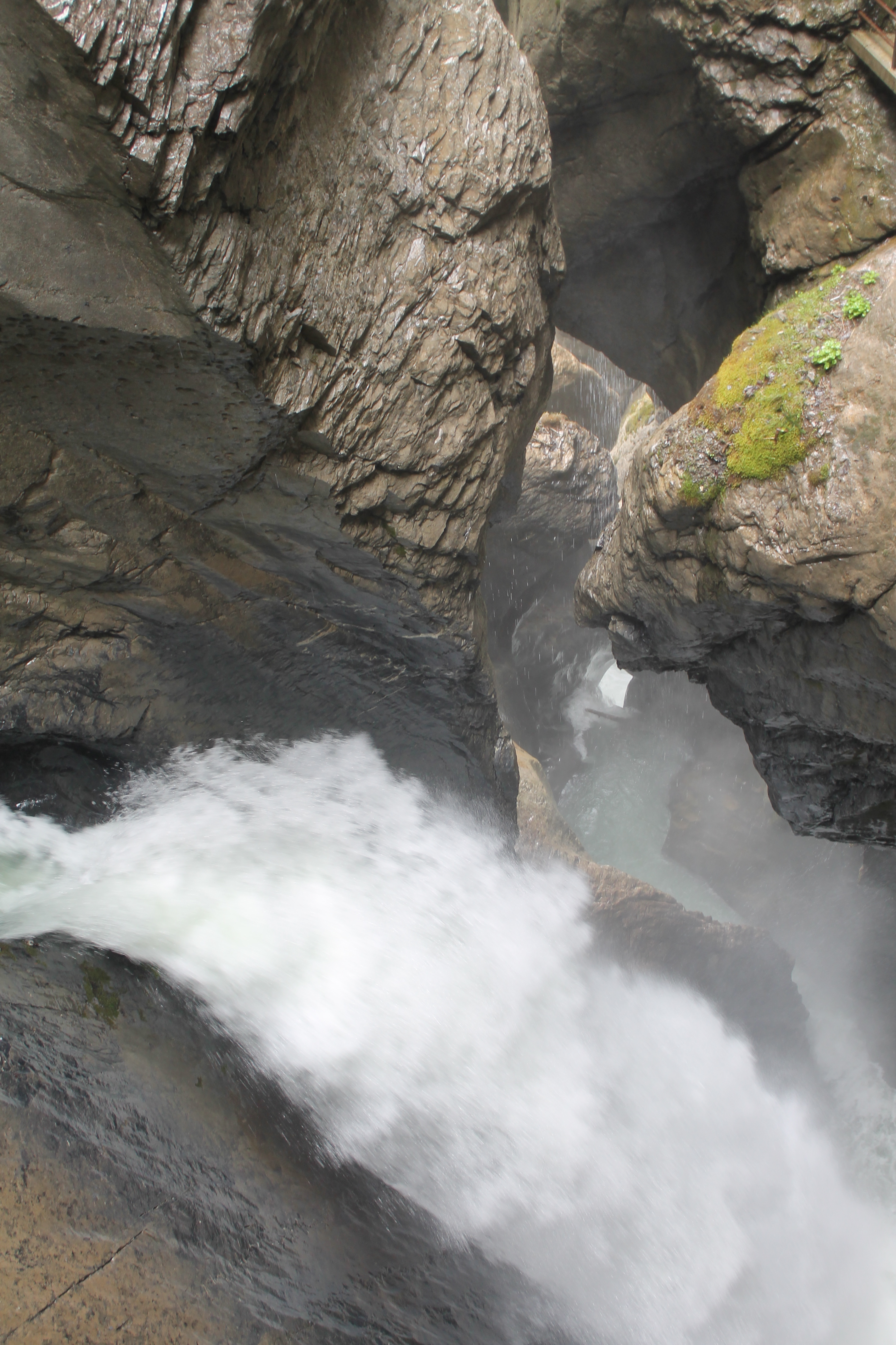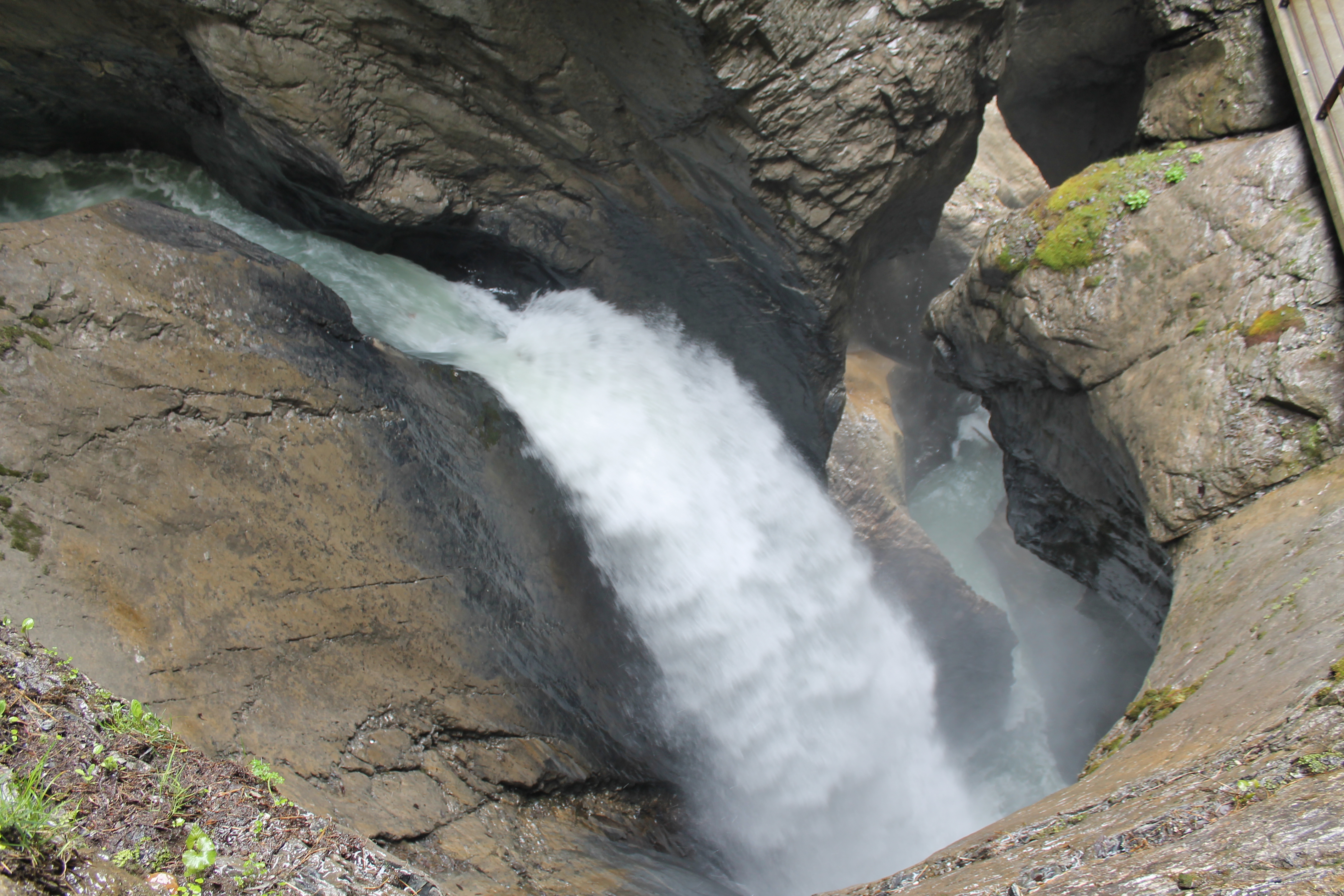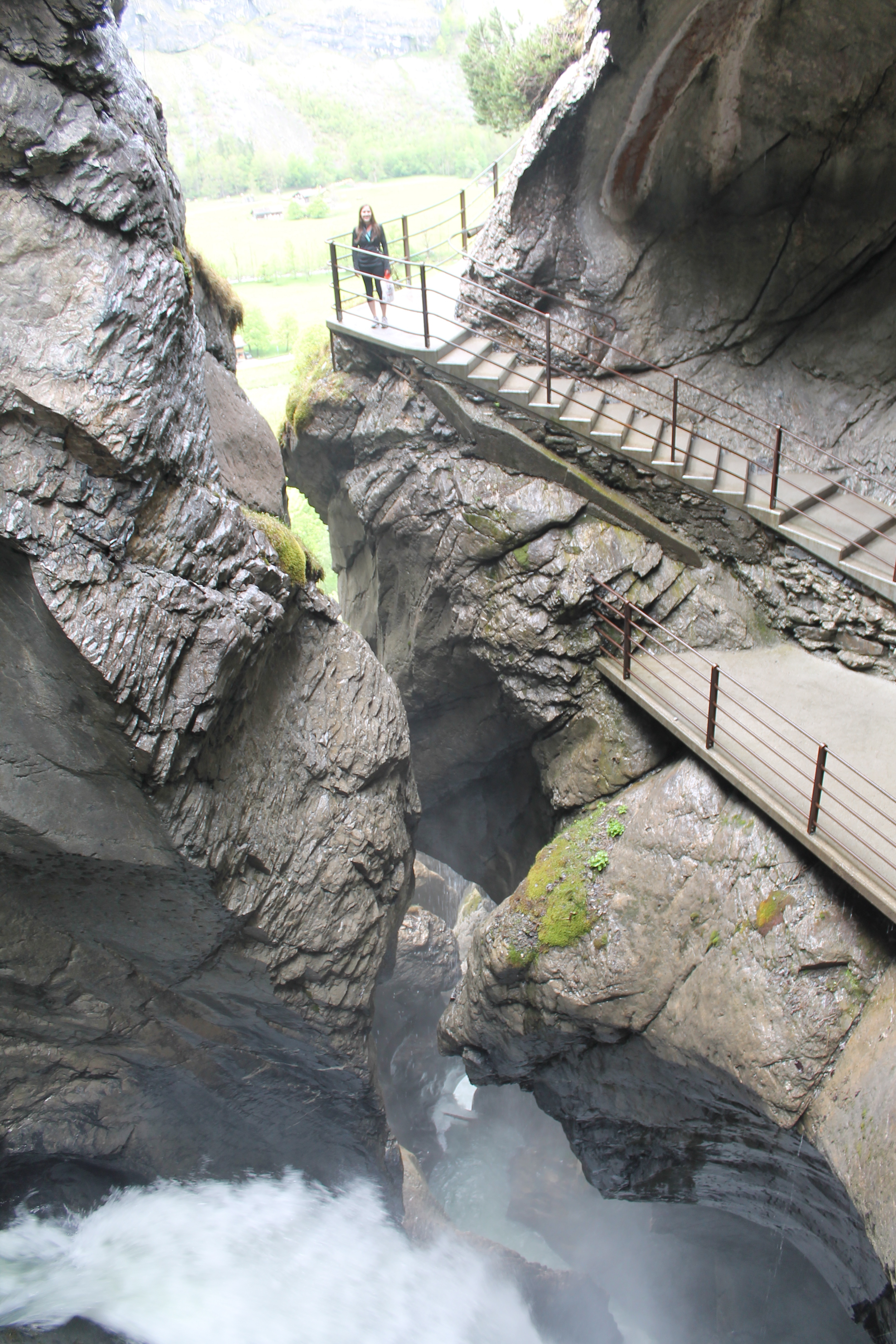 We arrived at Tremmelbach probably around 3PM and headed in the elevator-thingy to the very inside of the falls. Tremmelbach is the only place in Europe where people have access to waterfalls inside the mountain. There are ten waterfalls! It was very impressive! And loud 🙂 My mom and I had fun peering down at the waterfalls and touching many of them, probably spending about an hour inside the mountains. The engineering of the whole set up was mindboggling—they had the most perfect stairs leading all through the inside of the mountain, that fit in so naturally, as if they had been there all along. It was a bit freaky too thinking about how powerful the waterfalls were and with one rock breaking, they could change direction and go wooshing through the tunnels for tourists!