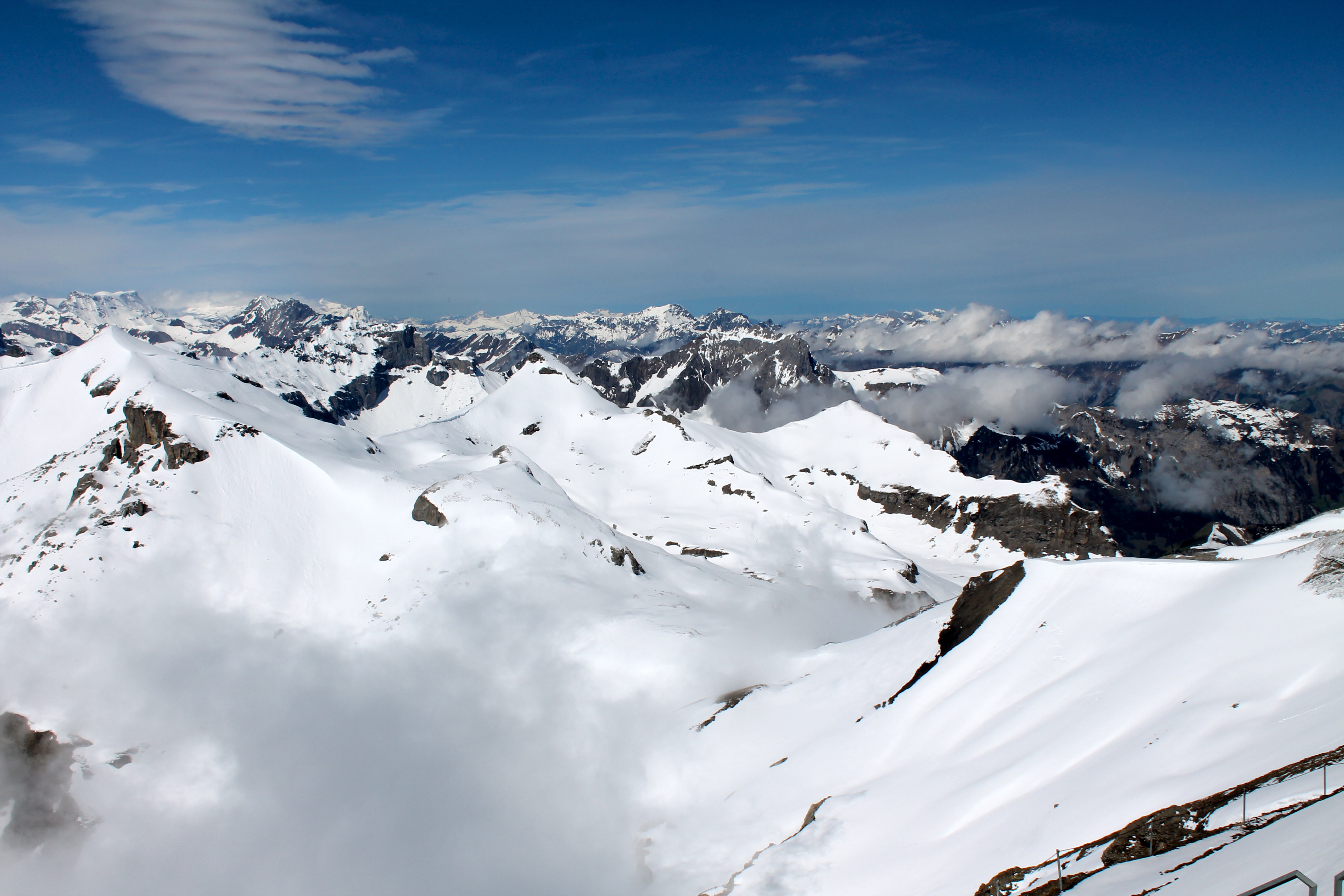 I really couldn’t have imagined a better day to summit the Alps. The clouds stayed far away from me the whole time we were up there—despite weeks and weeks of clouds & rain, we were told by a couple who had been there three WEEKS waiting for it to clear up so they could go to Schilthorn. I’d like to thank whoever up there decided I had enough good karma to blow away the clouds for me and make the stars align, so that I could enjoy my short visit in the Alps. My mom and I were super fortunate.