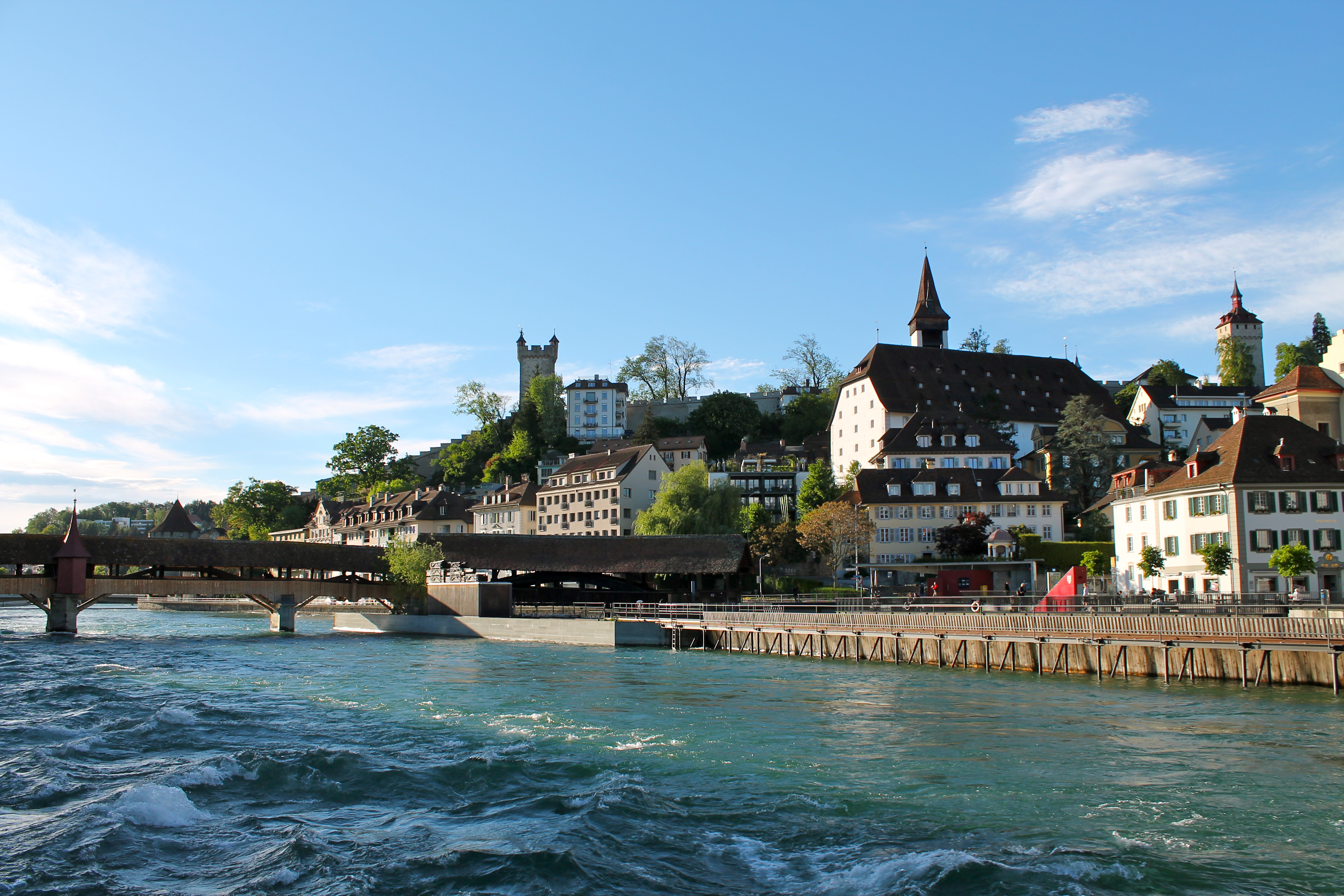 Despite our hunger, we checked into our lovely 4-star (rollin’ with the big dogs!) hotel first. Fortunately, it was just a 5-minute walk from the station, so we brushed our wind-blown locks and headed out for food. I had read about a highly-rated authentic Swiss restaurant online and directed my mom and I there, as we wandered along the river in Lucerne.