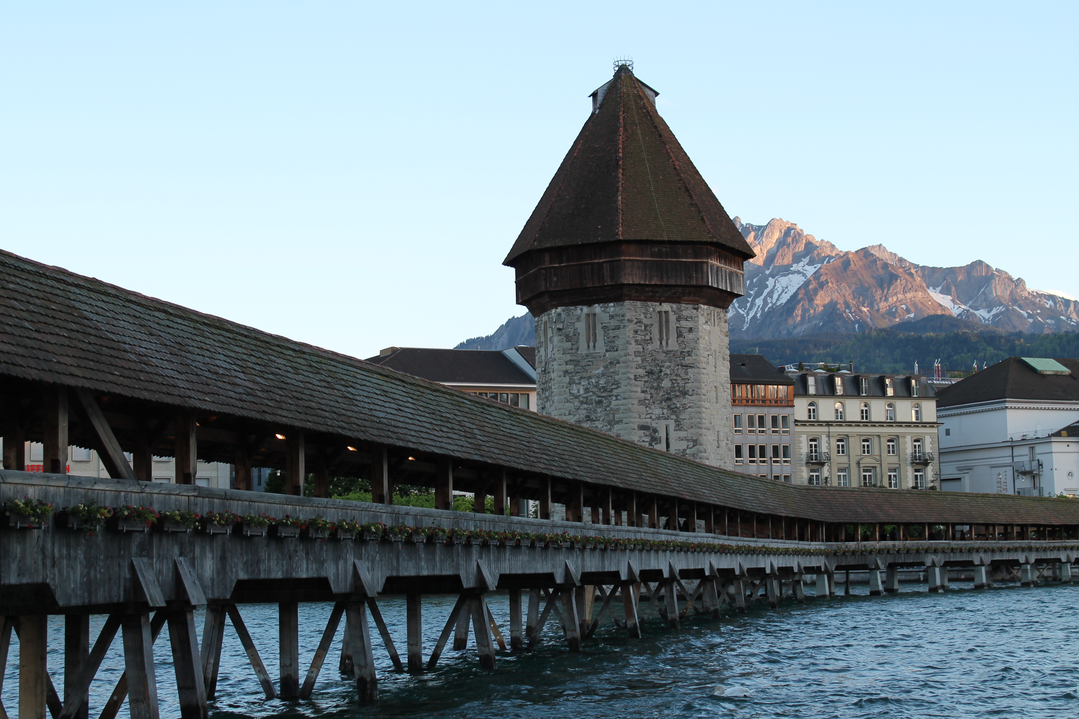 Mom and I walked around eating our hot-dog-in-a-pretzel (me) and salami-in-a-pretzel-with-butter (her), enjoying the sunset in Lucerne. Then we were honestly just exhausted and excited to live it up in our luxurious hotel room. (Plus, everything in the entire city closes at 6PM apparently. Nothing was open!) We snuggled up in our beds, reading, organizing/re-packing our bags for the 40th time of the trip, and went to bed early.