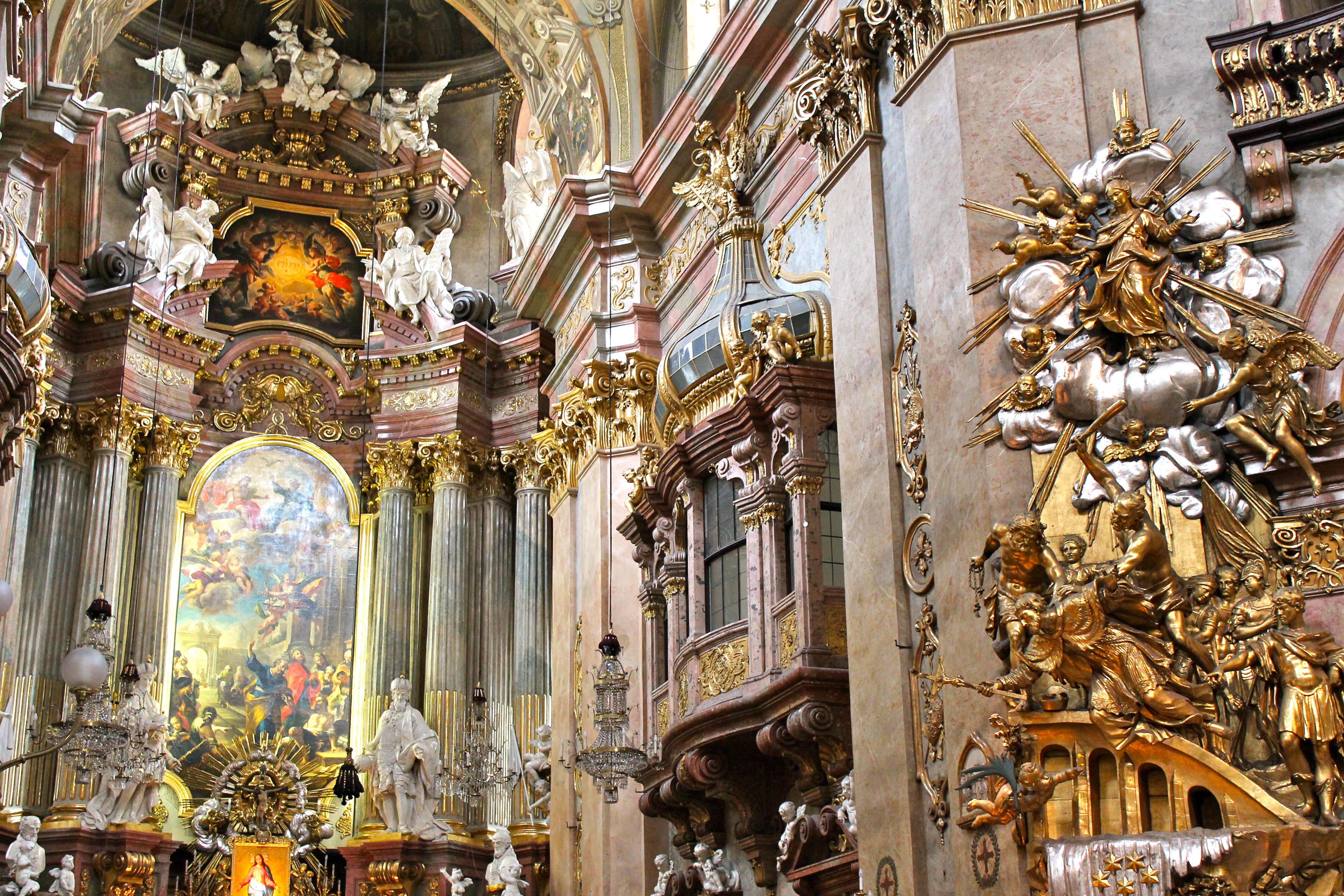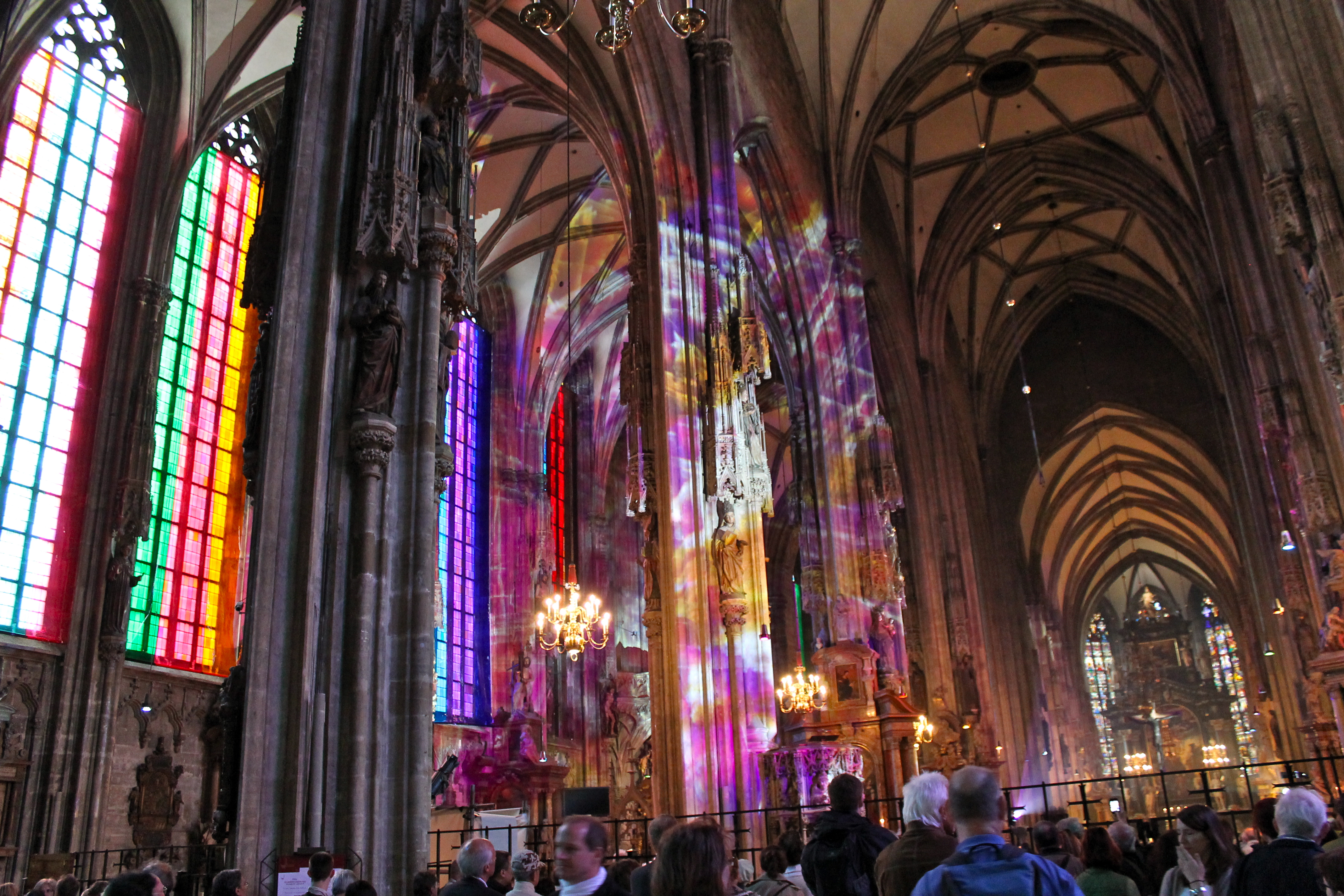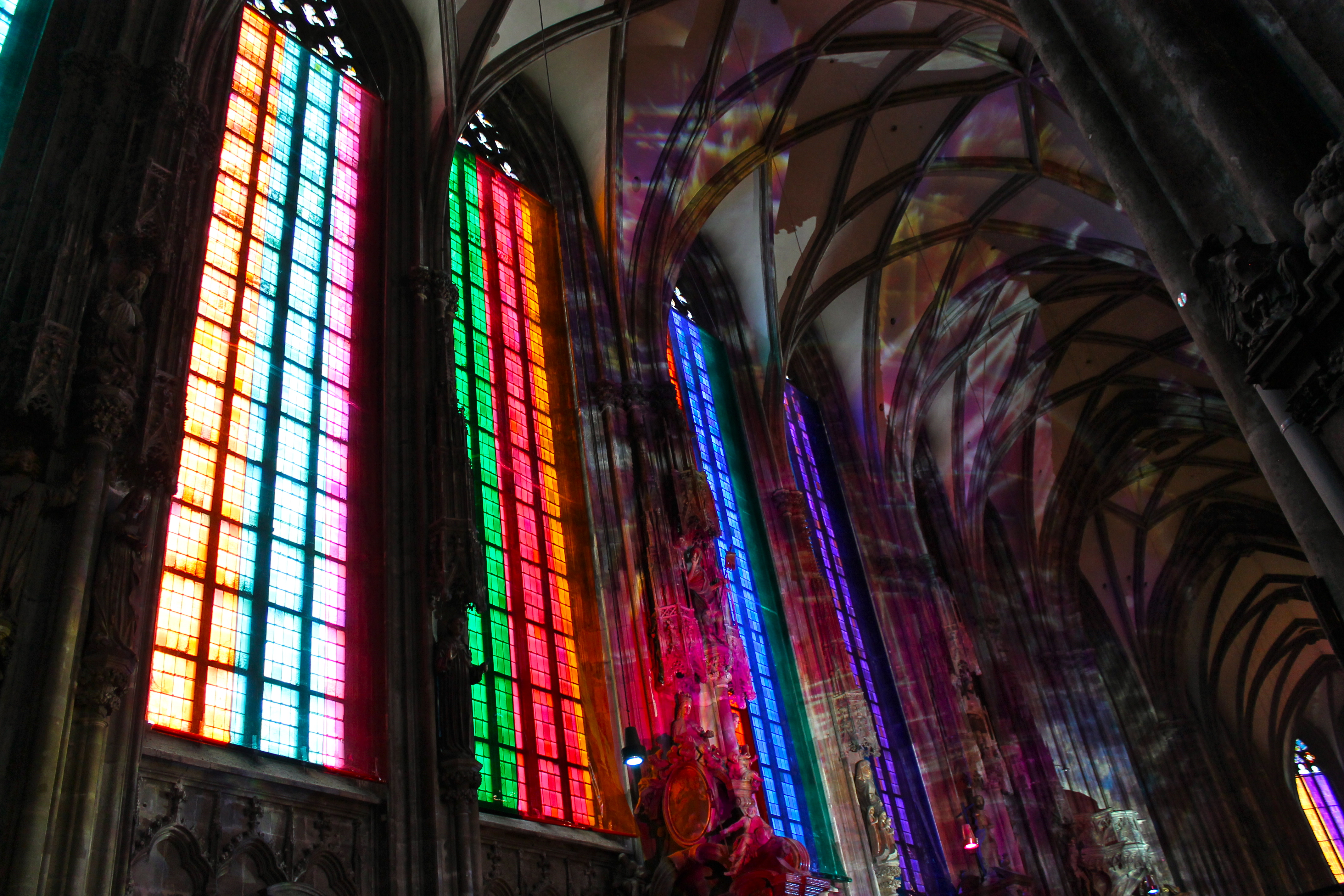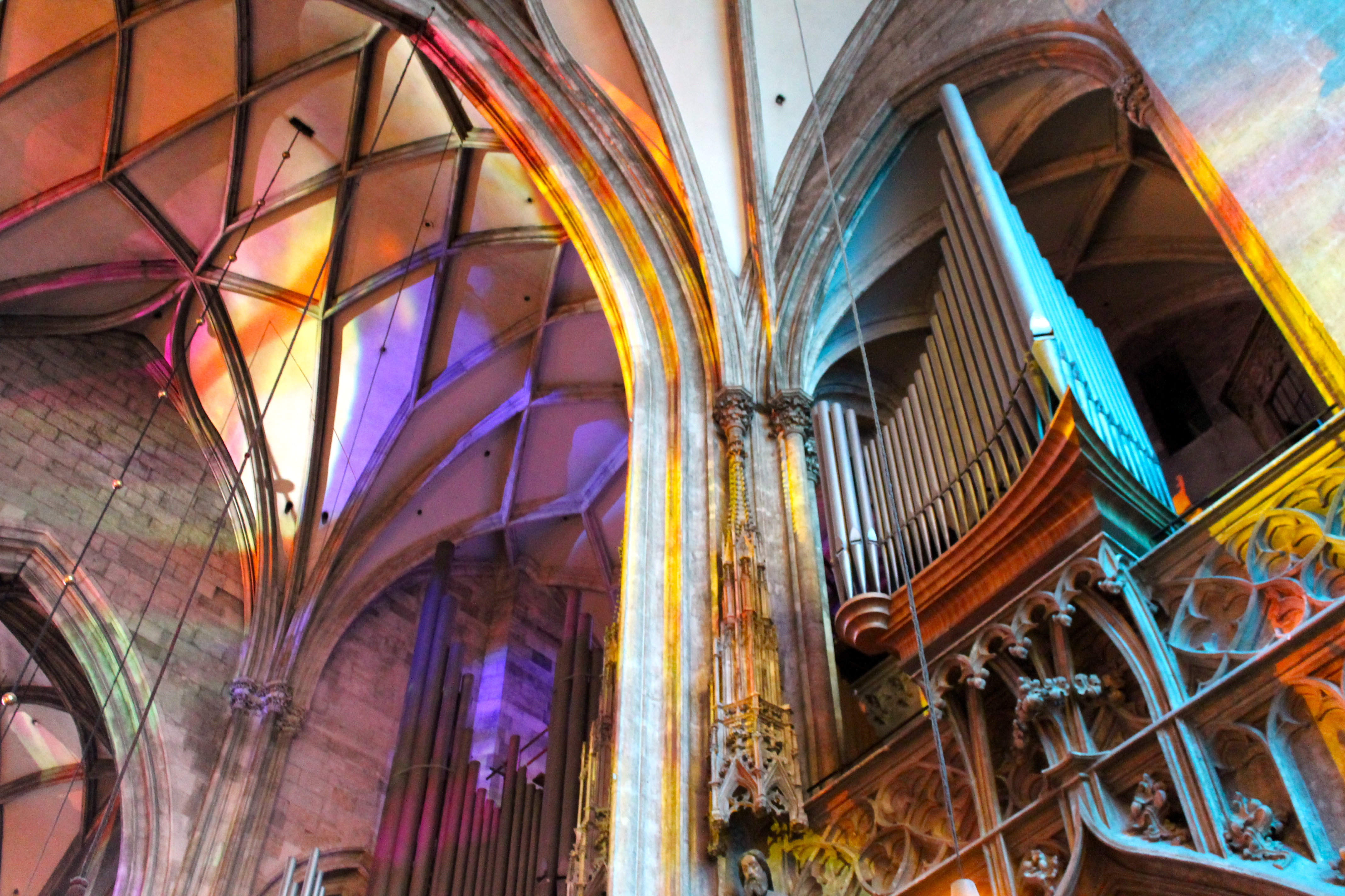 We began first with the cathedral, which was decorated for an Austrian Catholic holiday, which I sadly can’t remember the name of. Multi-colored, see-through drapes hung from all of the stained glass windows, giving the cathedral the coolest techno-colored look inside! It was beautiful! We spent a fair amount of time taking some pictures inside.