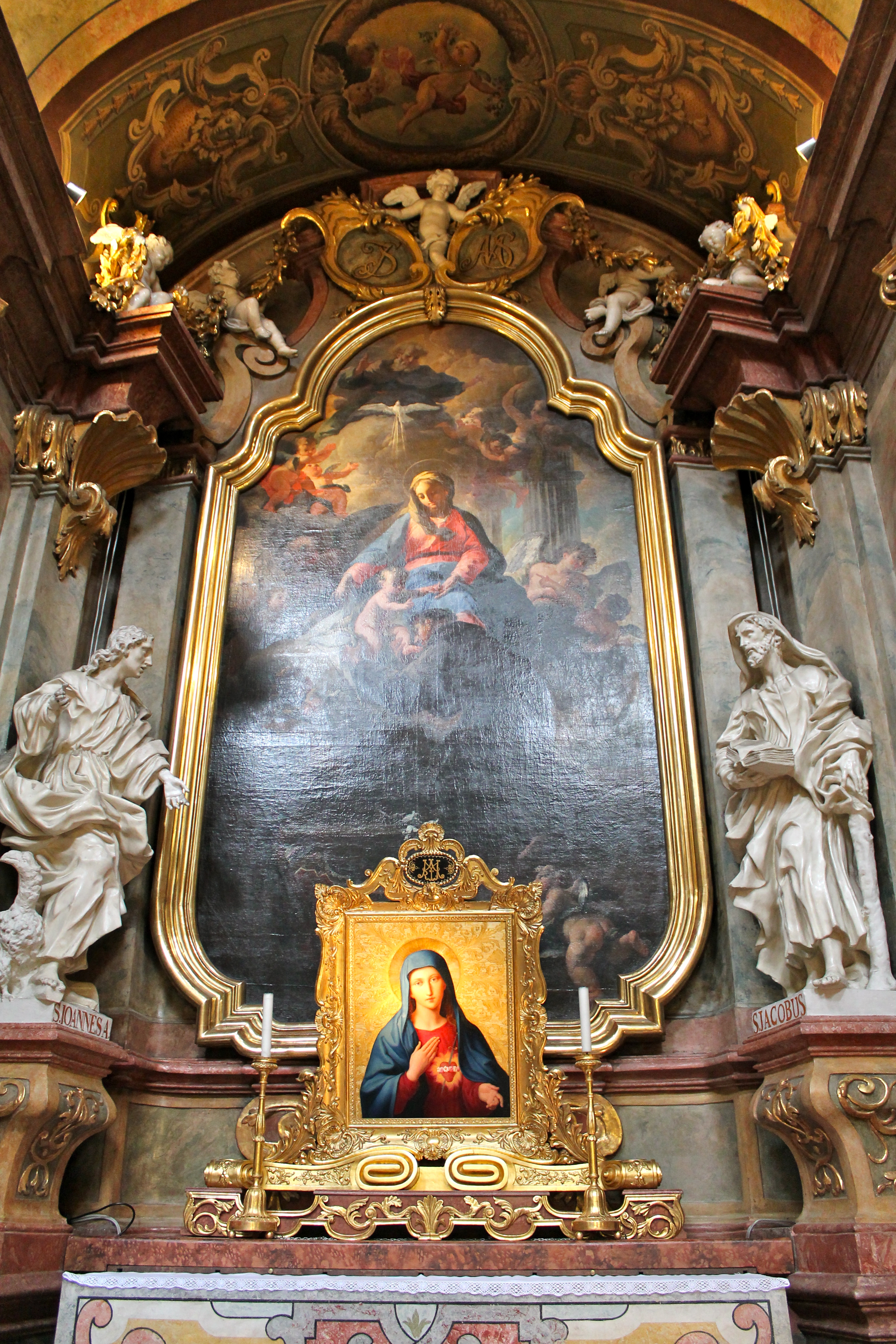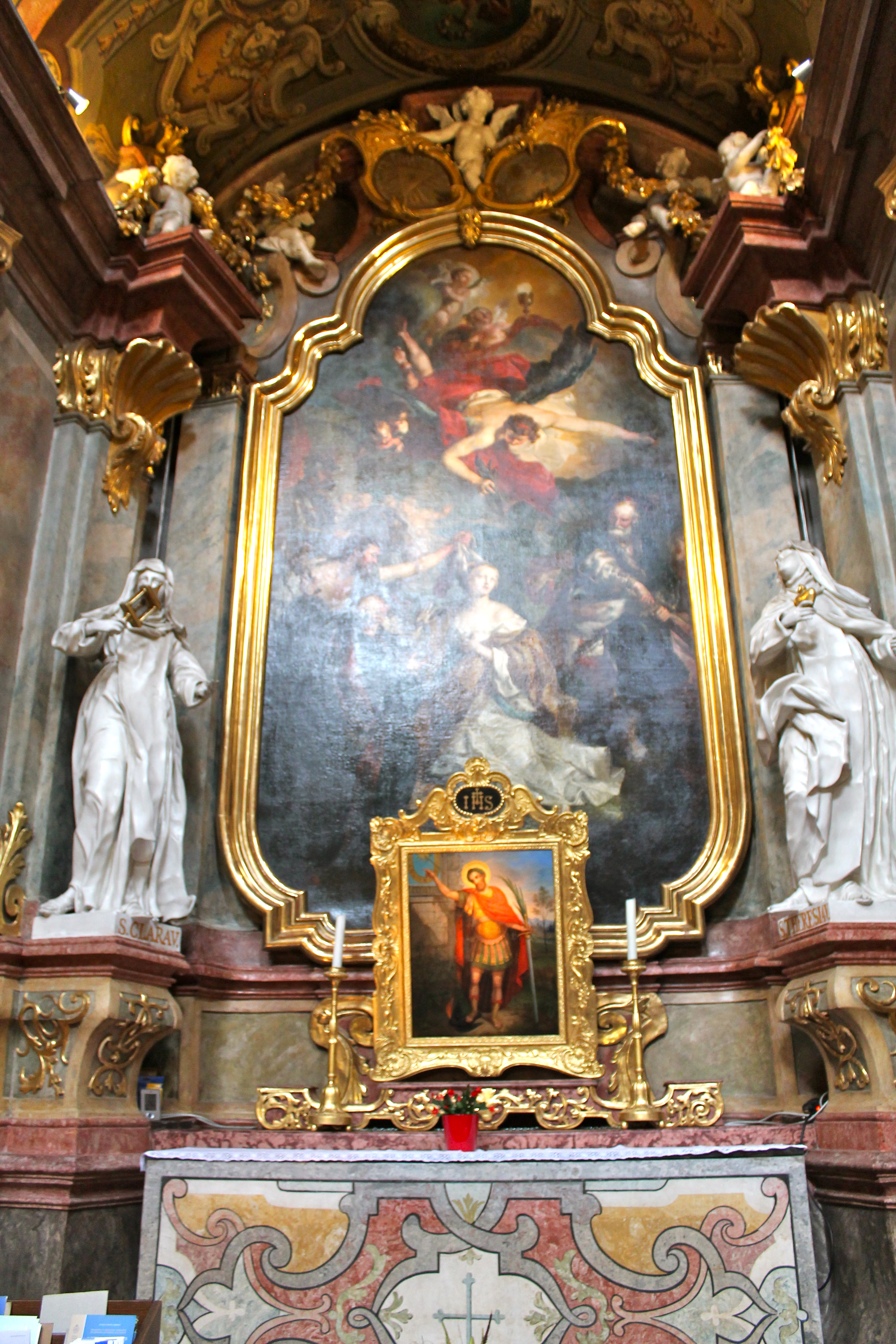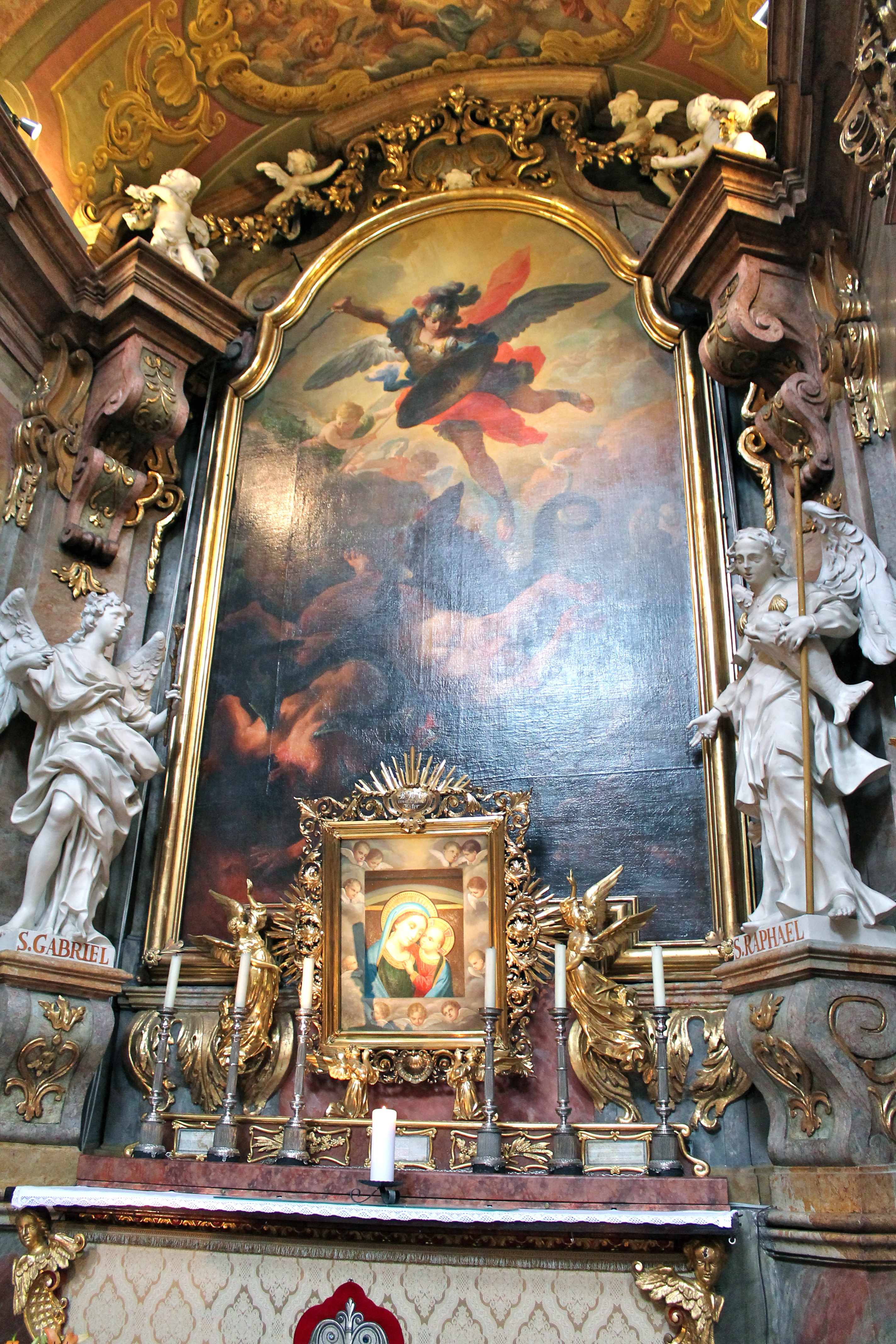 Then we headed through the plaza area to St. Peter’s Church, nearby, where I was excited to find alters for St. Michael, St. Anthony & St. Barbara—I didn’t know my dad and his siblings were all named after saints! Fortunately, my mom knew this and told me, so I took pictures of them all. It was cool to find my dad & his brother & sister all hanging out in one church 🙂