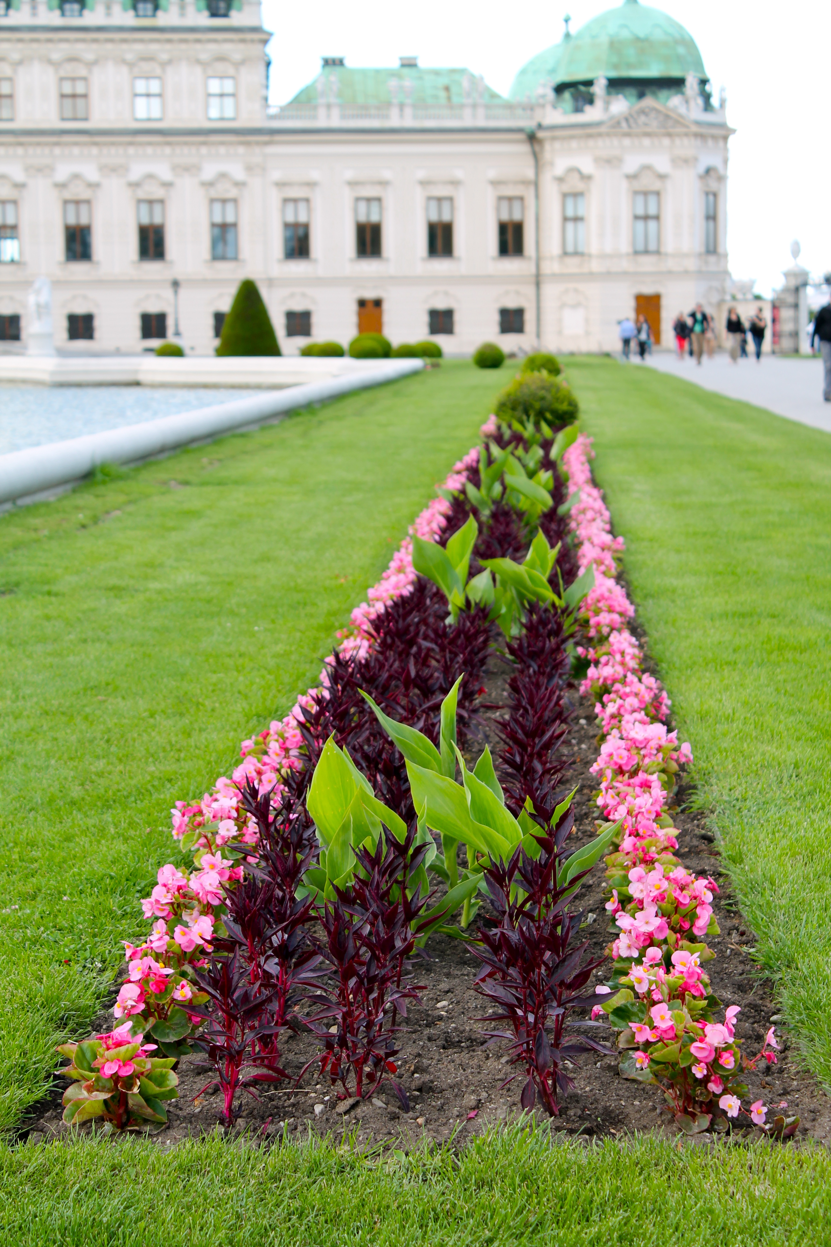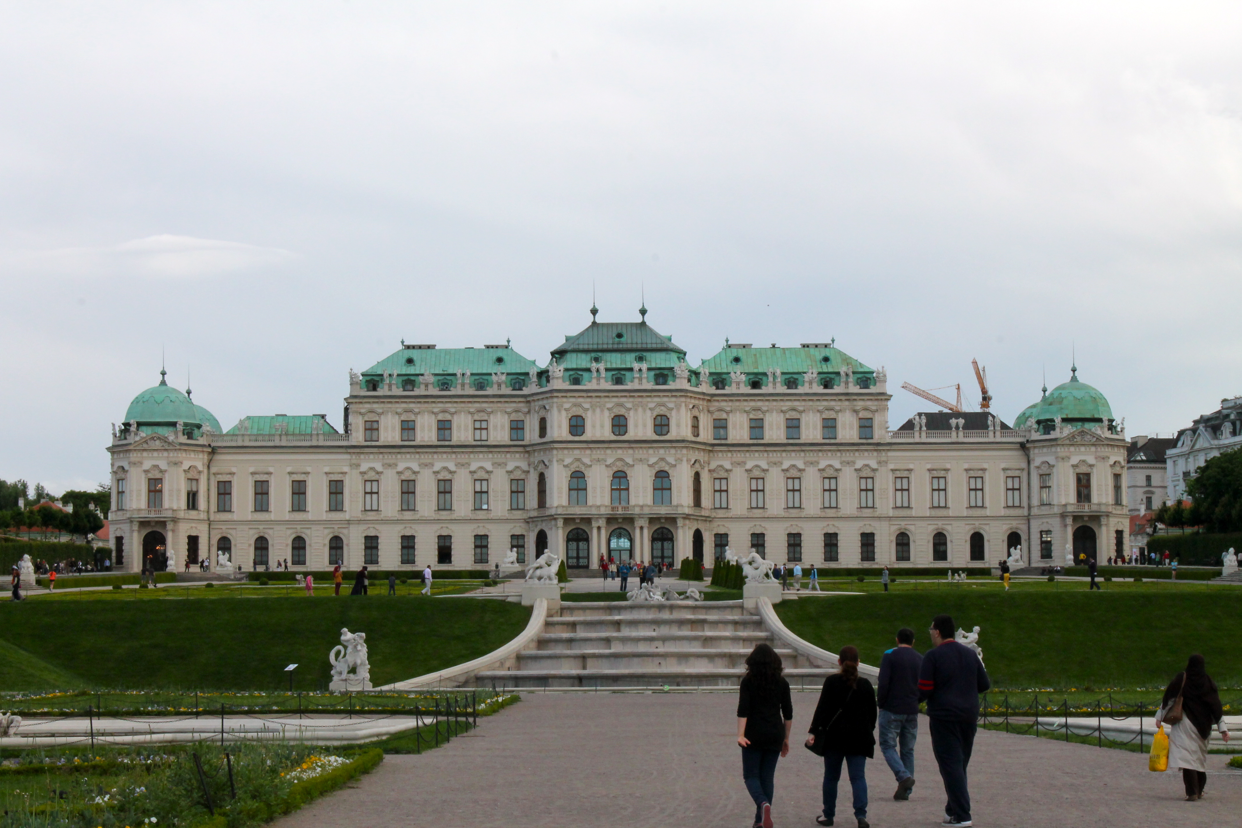After showering, we headed out to Belvedere Palace. Belvedere was very pretty with extensive, impressive gardens, and we enjoyed walking through them. We met two girls from Russia who were kind enough to take our photos. I also managed to capture my mom in her infamous “Yoga at the Louvre” picture-taking pose.