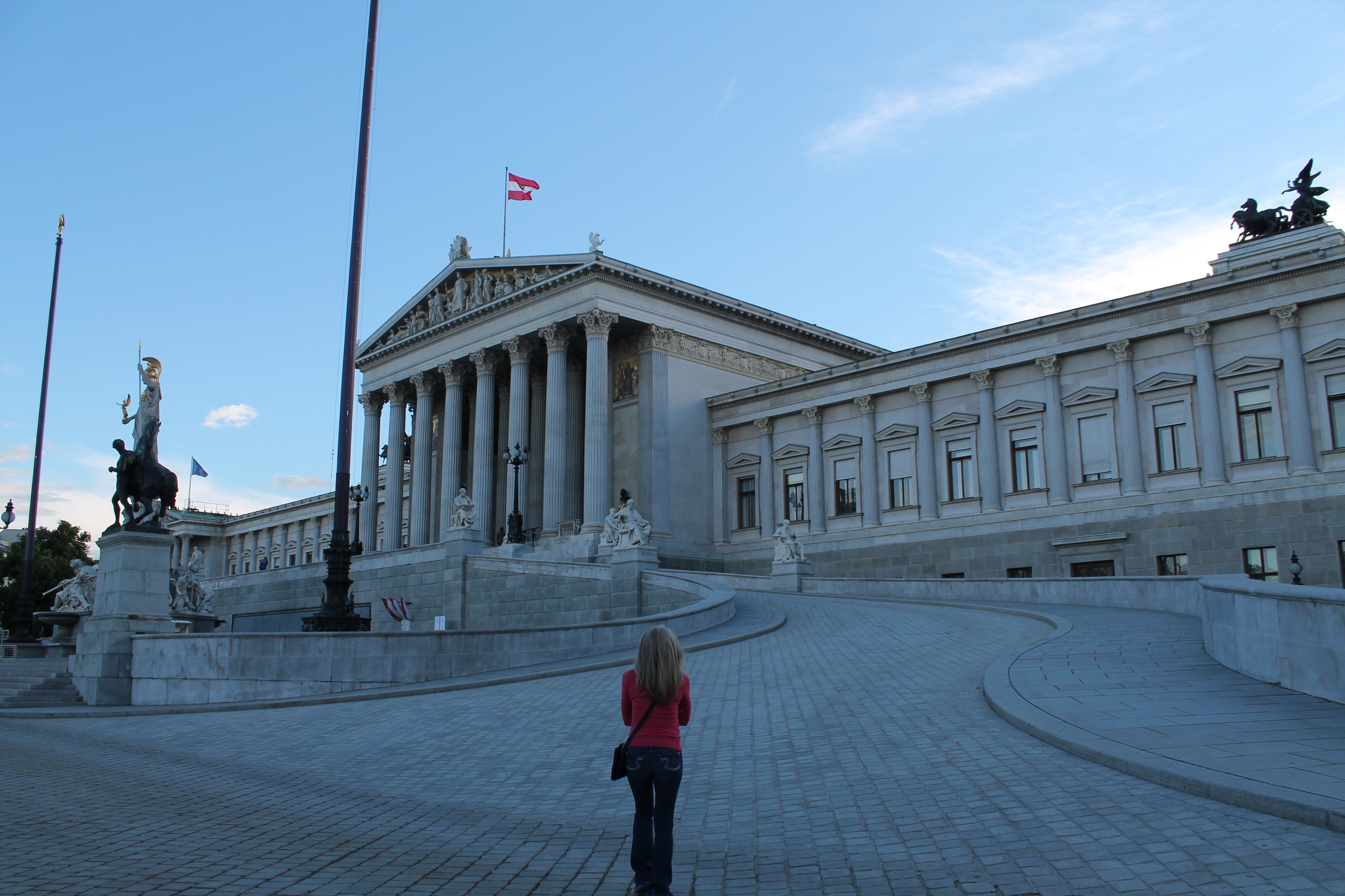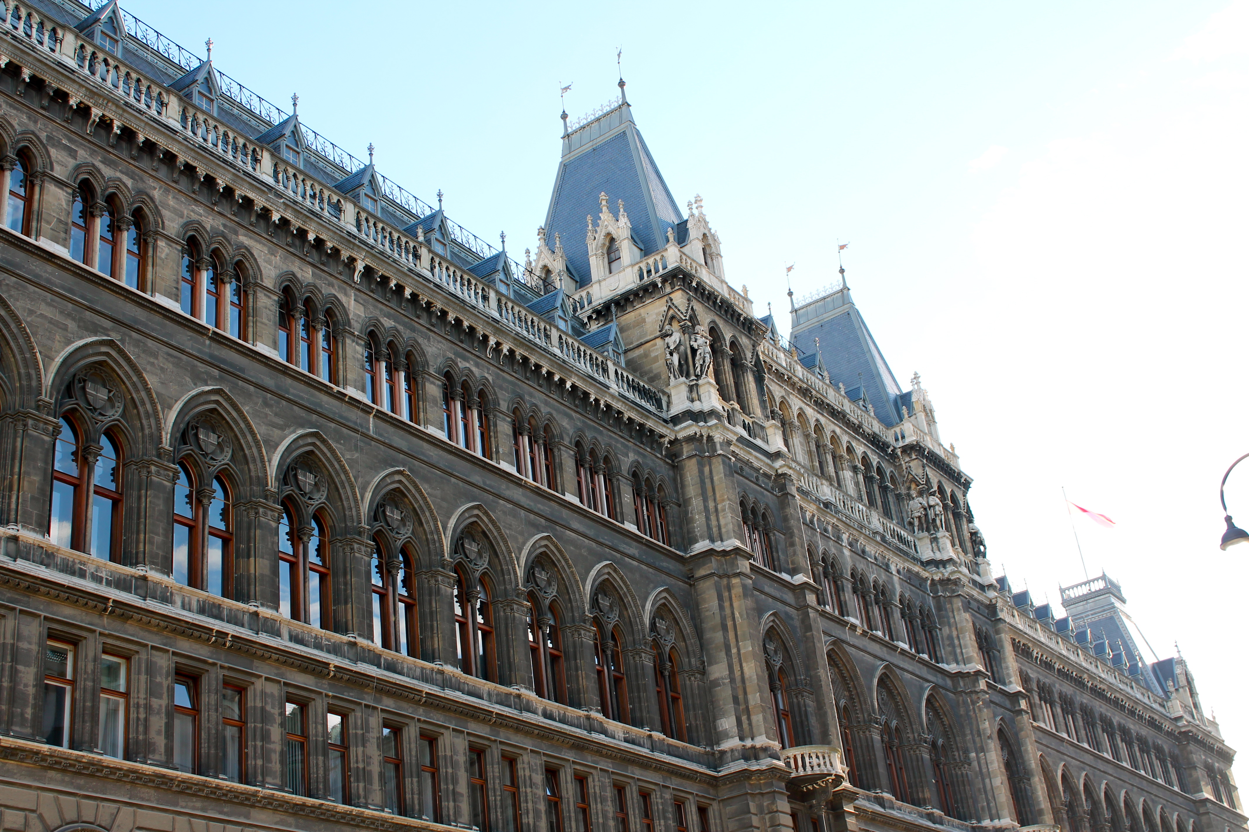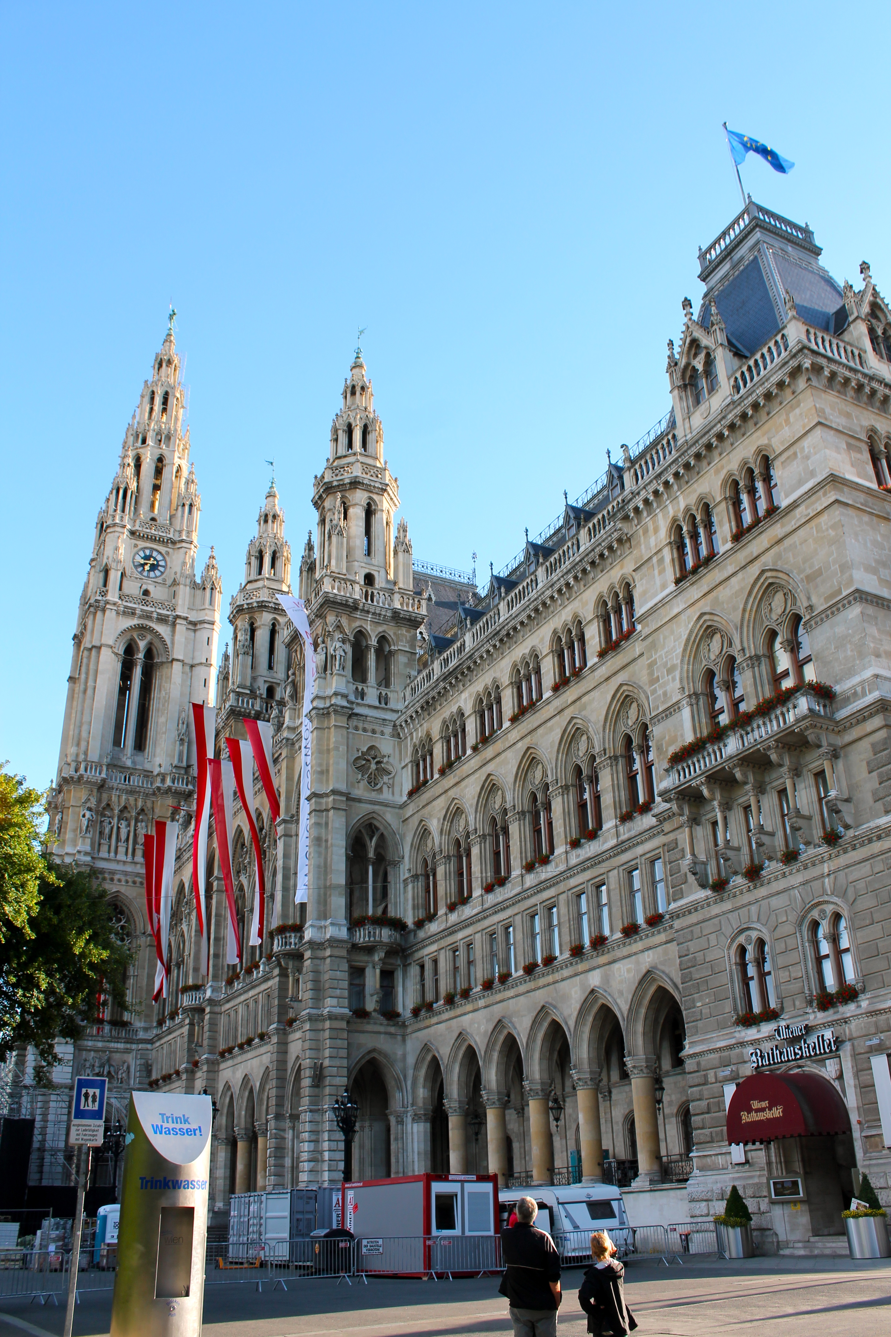 We walked through Schwarzenburg Place before heading back through the Museum Quarter to the government-buildings part of the city (is that a descriptive term?). Along the way, we stopped at Beethoven’s old house and were super sad to see it had been graffiti-ed. My mom really enjoyed seeing the town hall! Even though they were setting up for the annual Life Ball (Vienna’s famous charity event for AIDS) and lots of the view was blocked, she couldn’t stop raving about the detail. It reminded me a ton of Munich’s town hall, which I have always raved about myself.
