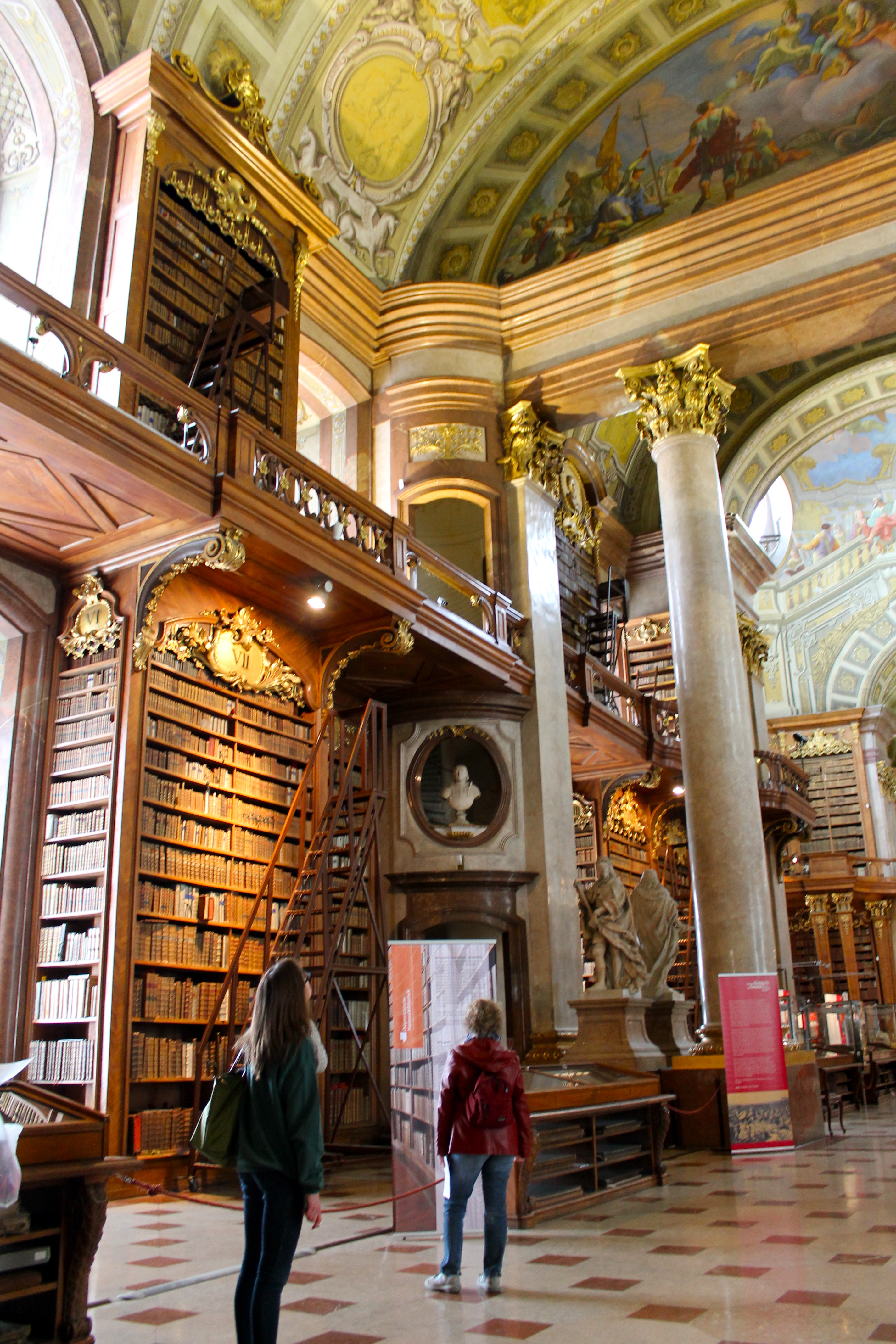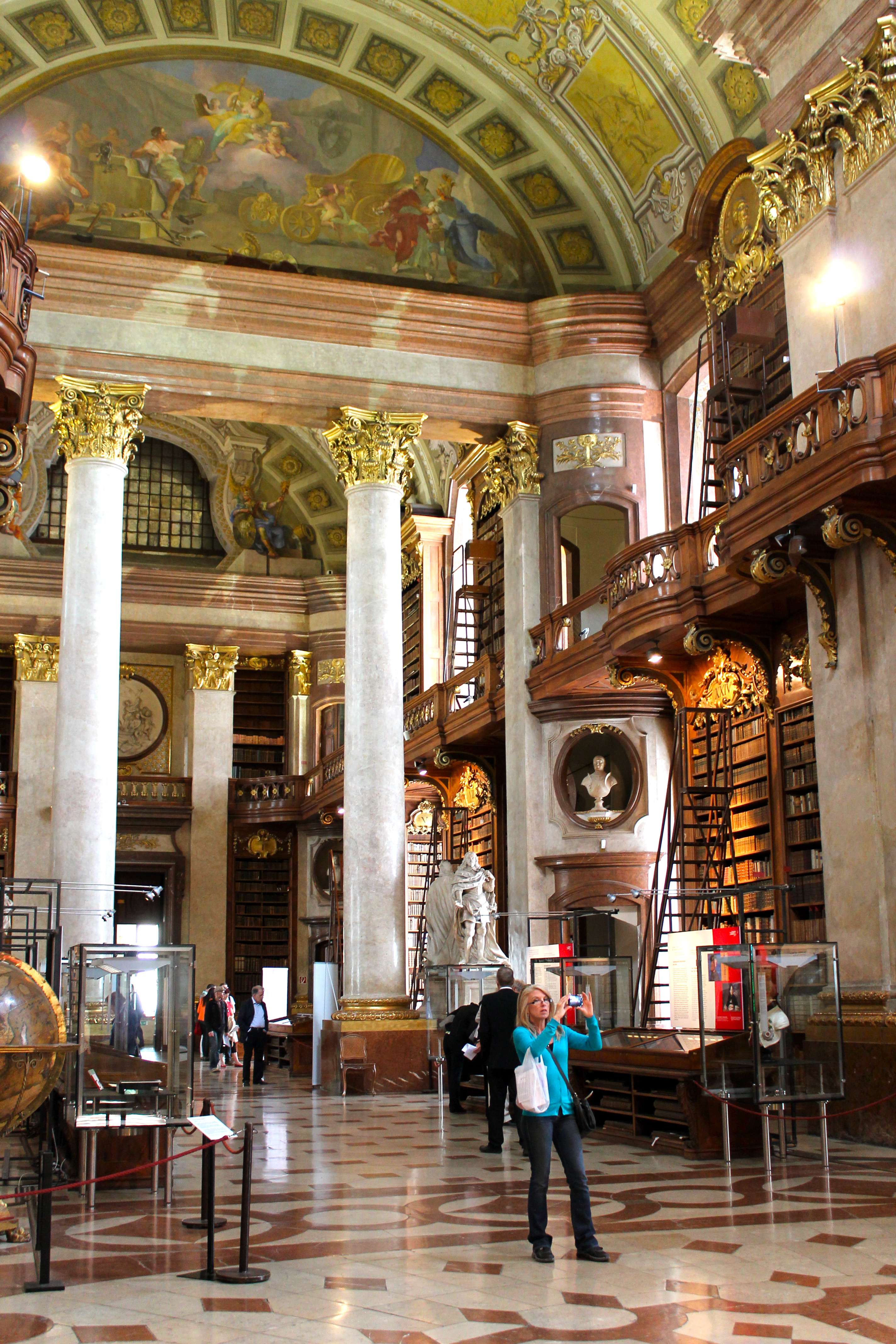 After catching up with him for a few moments, we headed to the Prunksaal of the National Library. This was my favorite part of Europe! Pictures will do it no justice, nor will words, but it is basically the most grand, beautiful, detailed library I have ever seen, filled with thousands of old leather-bound books. The wood carvings and murals are breath-taking and the whole room takes your breath away. The entire time I was there, all I could think about was how much my dad would enjoy the Prunksaal, and I was determined to capture its splendor in my photos. No matter how many pictures I took, I just couldn’t capture it though. I guess I will just have to take him there sometime! The Prunksaal is truly Vienna’s best kept secret.