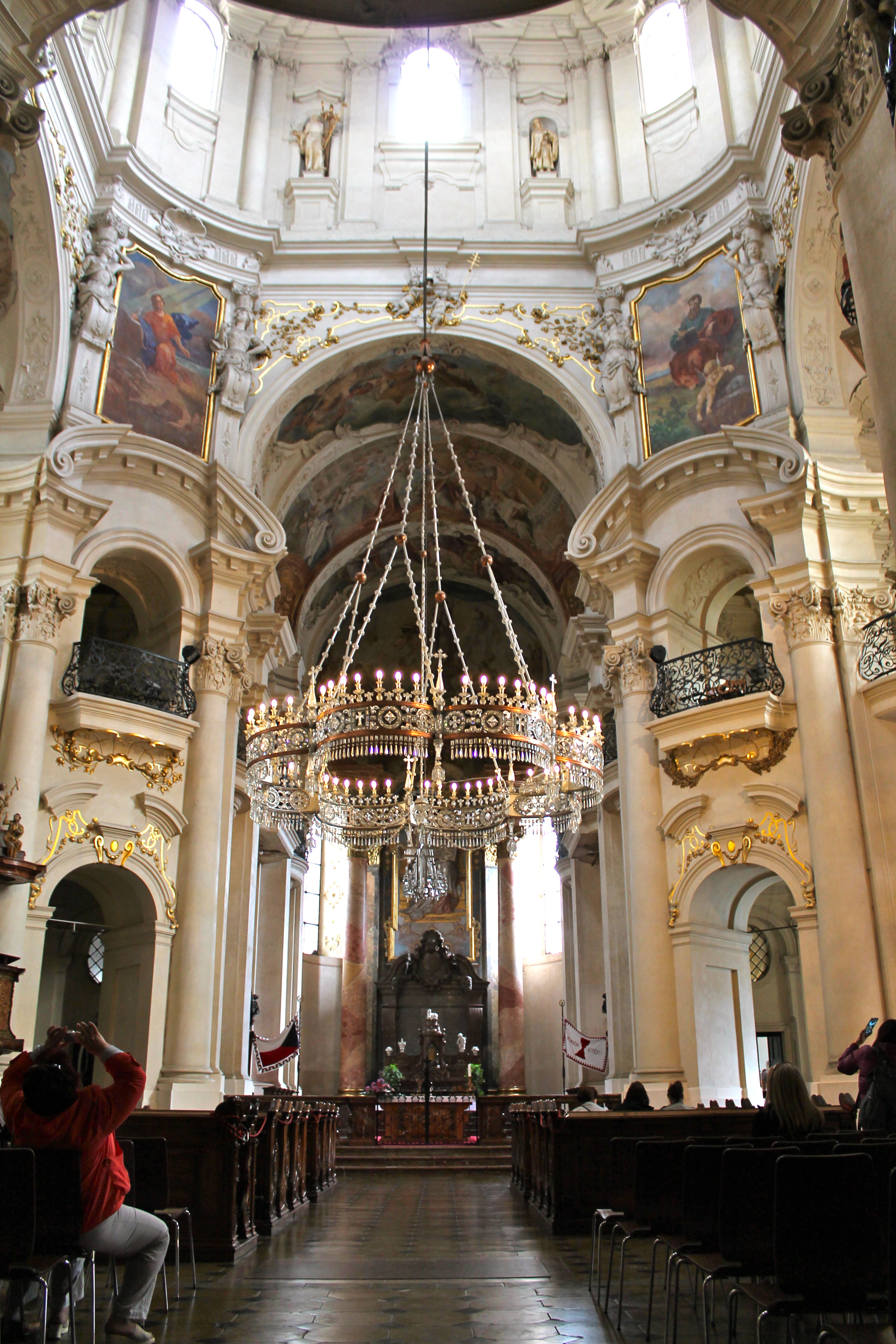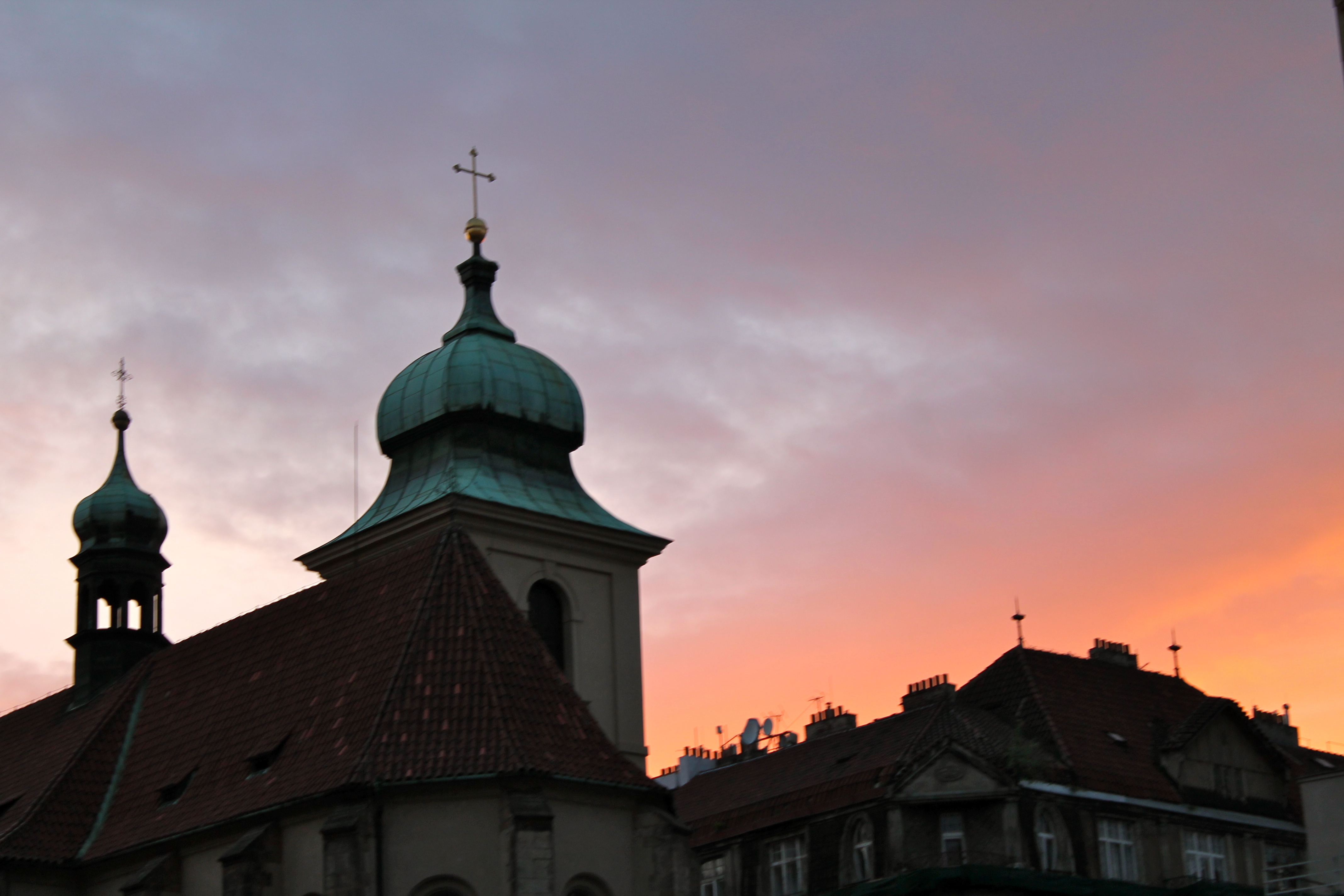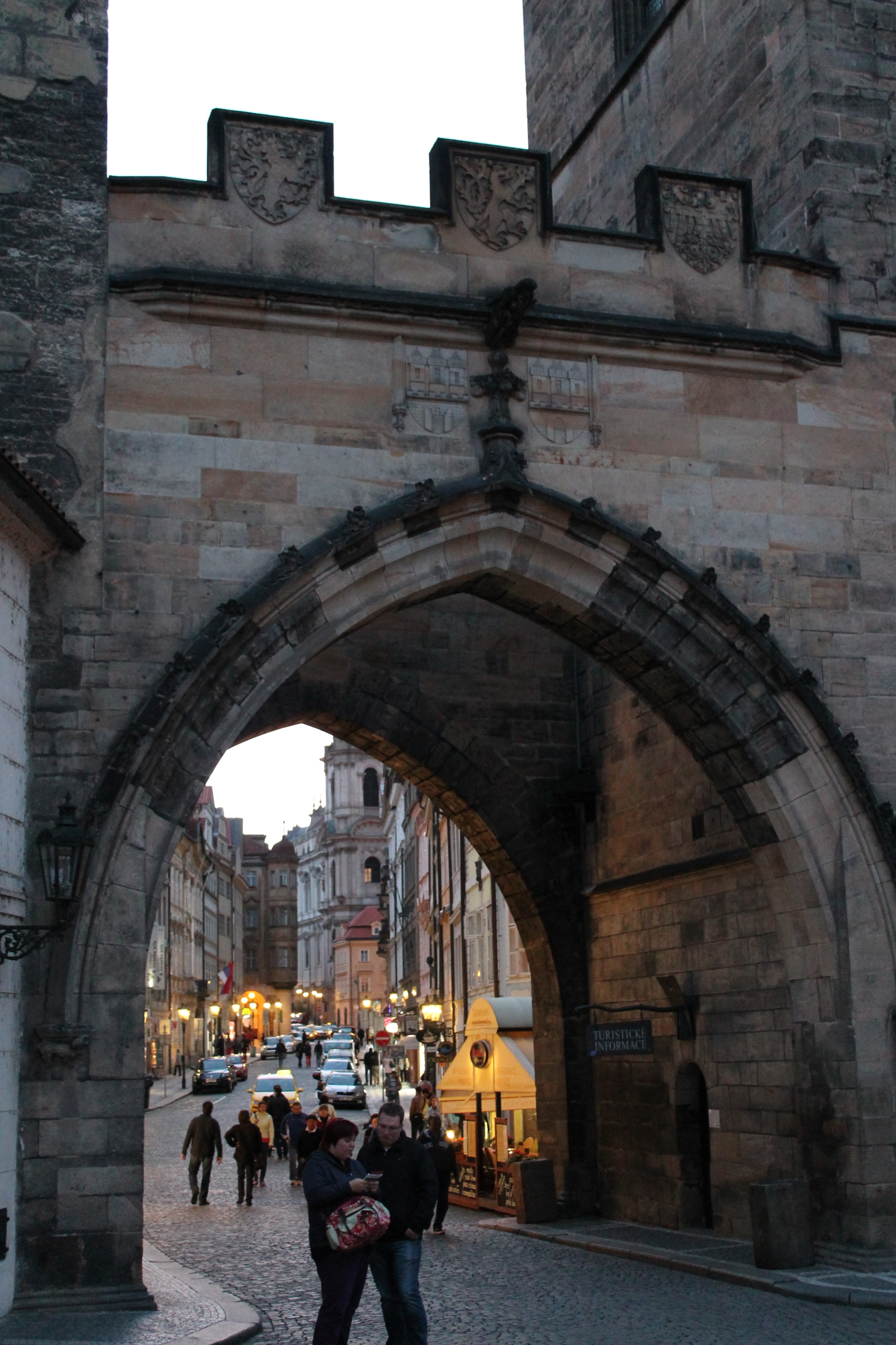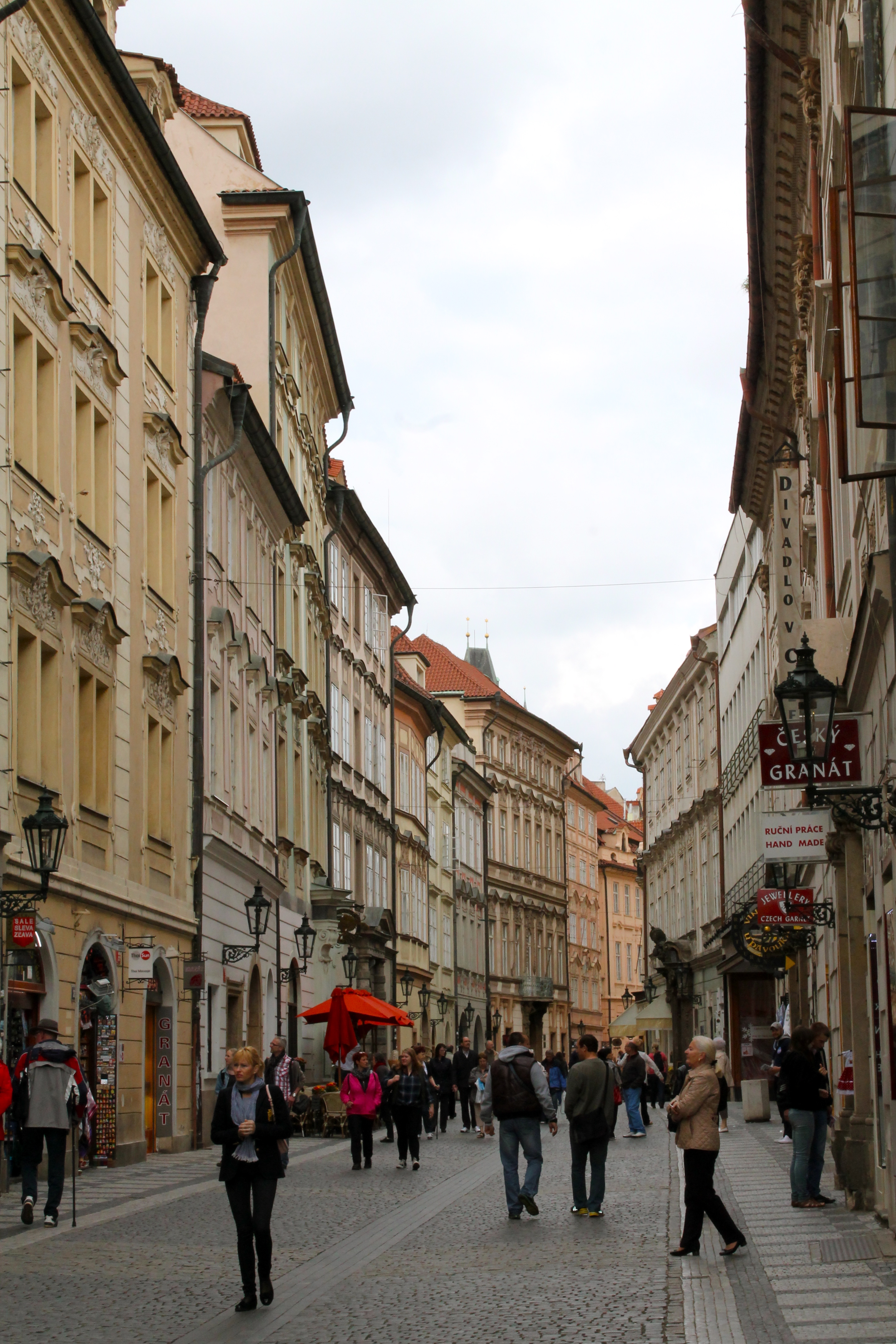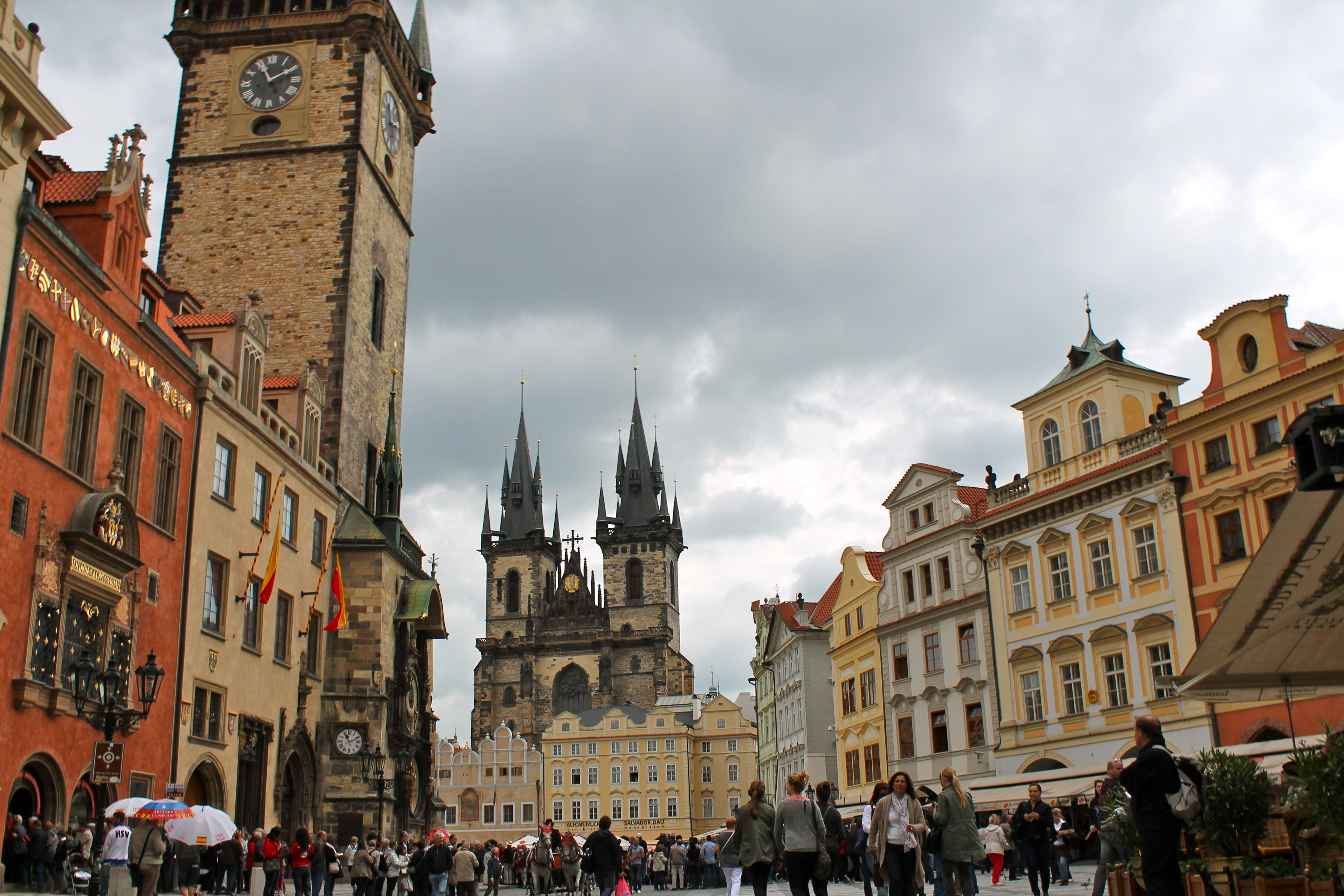 Our hotel was located right next to Municipal House, so from there we wandered down one of Prague’s most famous architectural streets (Na Celetna) to the Old Town Square and took in the cathedrals, cafes, clock tower, and shops. When I said that Prague was a juxtaposition, it was both figuratively and literally. It’s main cathedral was plunked down in the middle of things (or, more likely, they plunked things down around the cathedral) and is only partially visible!