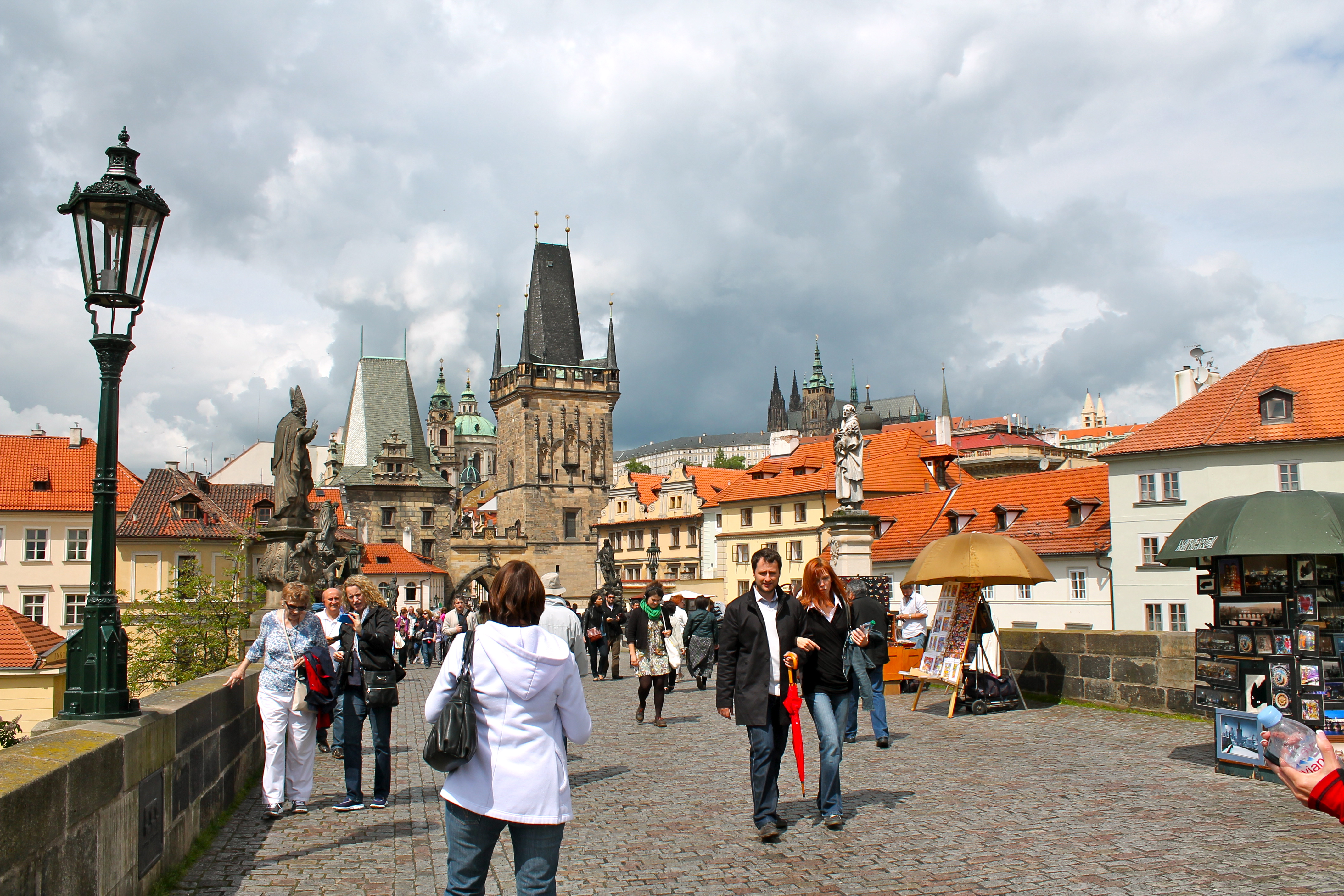 Next we headed down Na Karlova (my other favorite street!) and toward the infamous St. Charles Bridge. The bridge, built in the 1300’s is one of Prague’s most photographed site. It is lined with 20+ statues (some lucky!) and connects Prague Castle (its own town) with Prague. I have never seen a bridge like it! It was so wide & long, but pedestrian-only, and visibly ancient. The views both ways were magnificent!