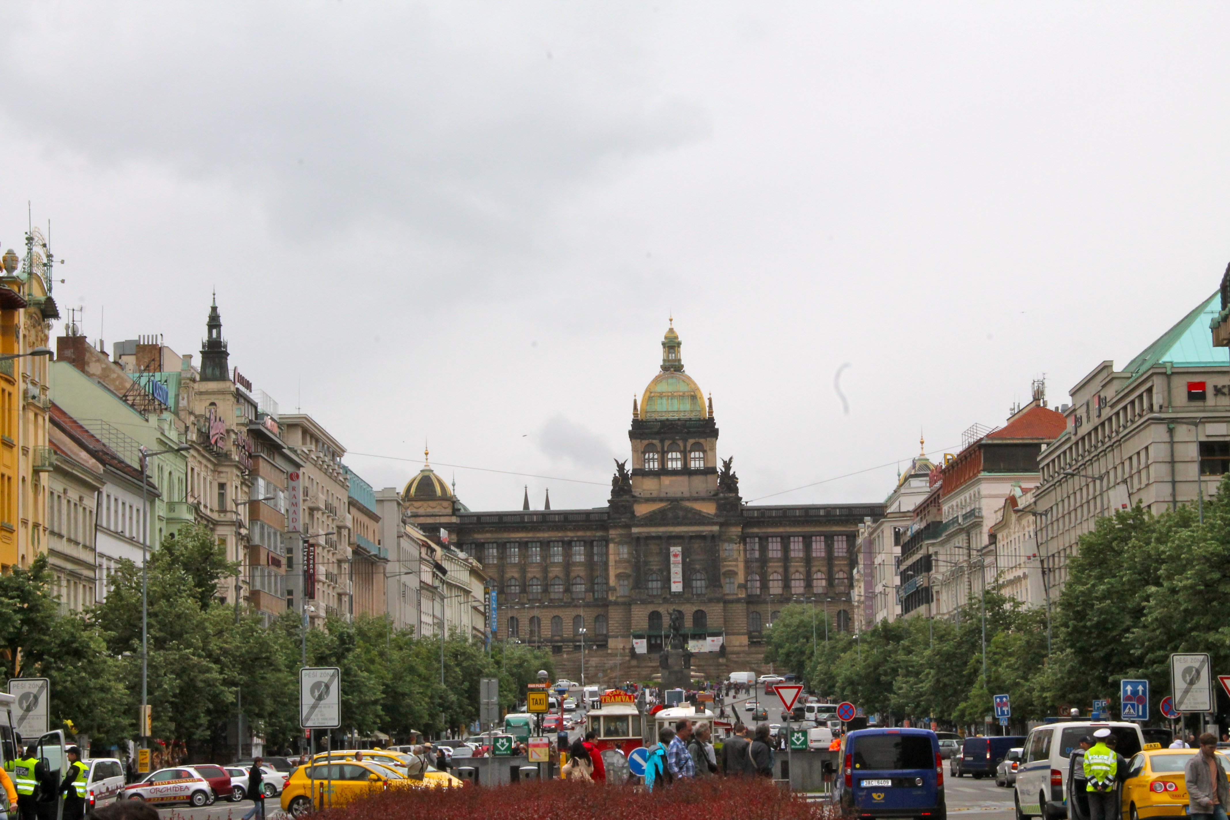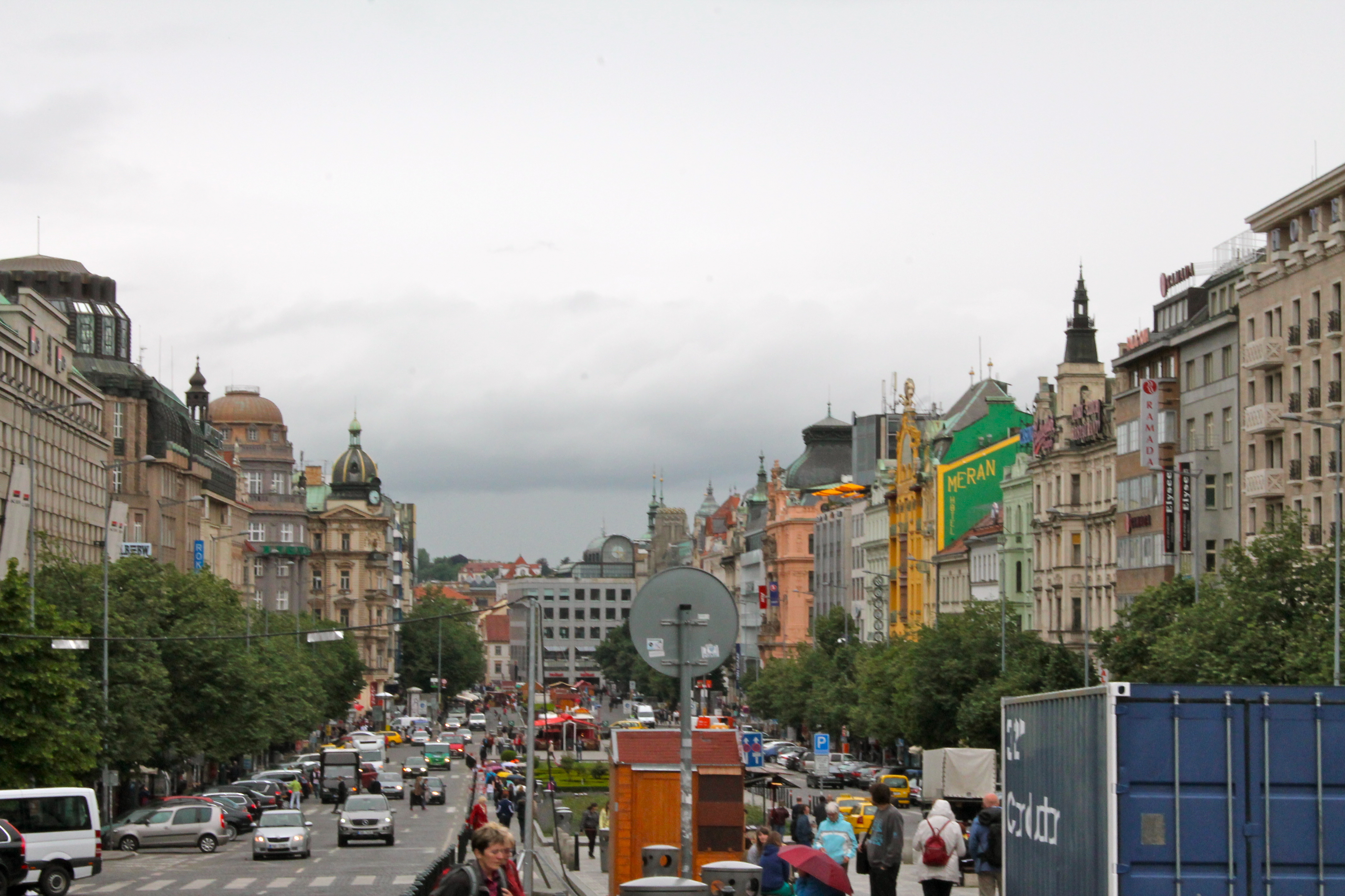 After lunch, we were hit with a downpour, but decided to keep exploring! Not wanting to be in any pictures though looking like drowned rats, we zig-zagged our way around any and all streets that seemed interesting. I made sure though to keep us headed toward “Dancing House,” a building by my favorite architect, Frank Gehry!