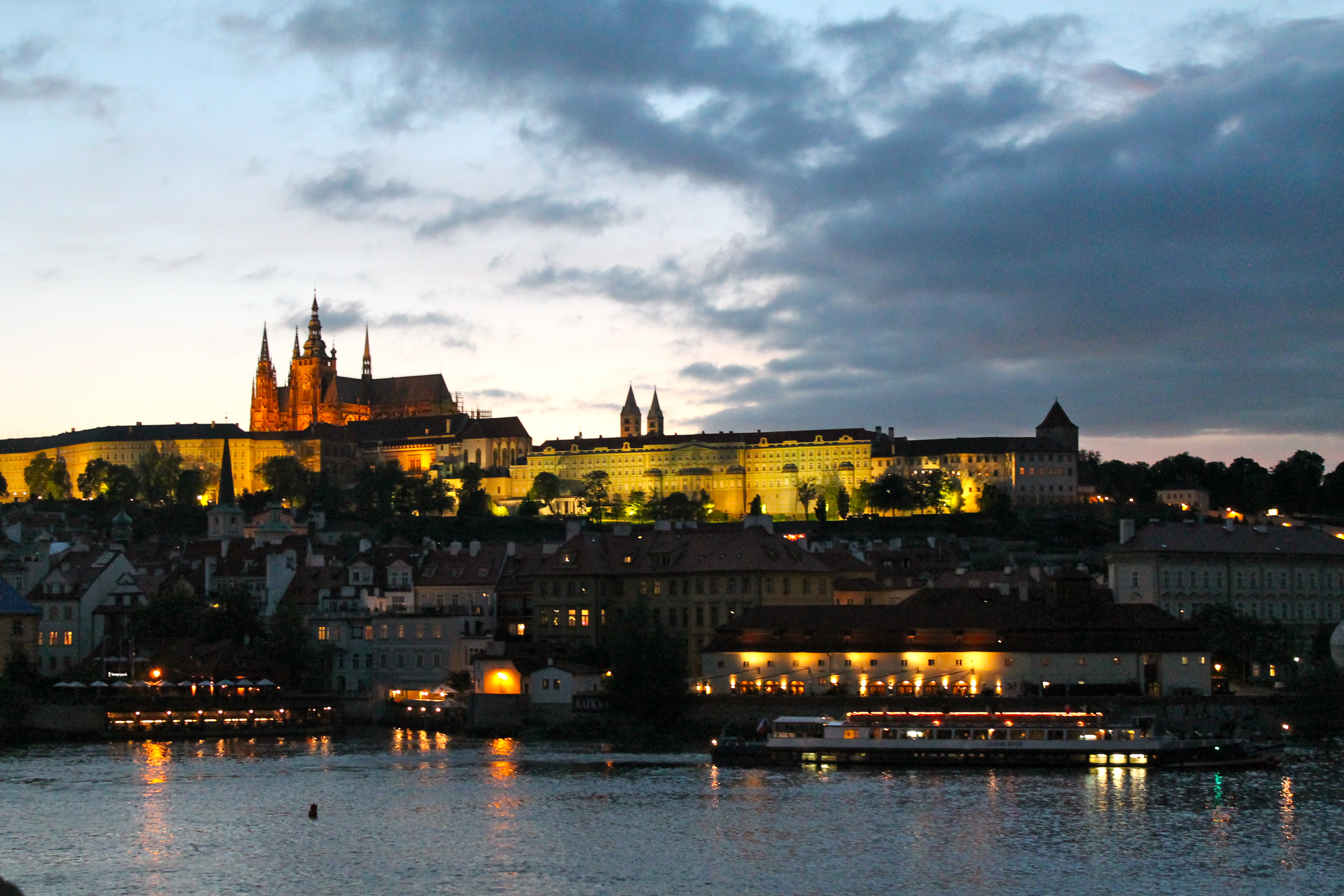 By the time we made it to Dancing House, which was a bit out of the way, we pulled a U-turn and walked along the river, back toward St. Charles Bridge. Once there, we wandered back into the Old Town Square before heading to our hotel to warm up and shower. Then we were back out and about town, catching the sights of Prague at night!! Soon enough though, too much time had passed, so we grabbed dinner on-the-go from a street vendor and headed to bed, determined to head out early the next day!