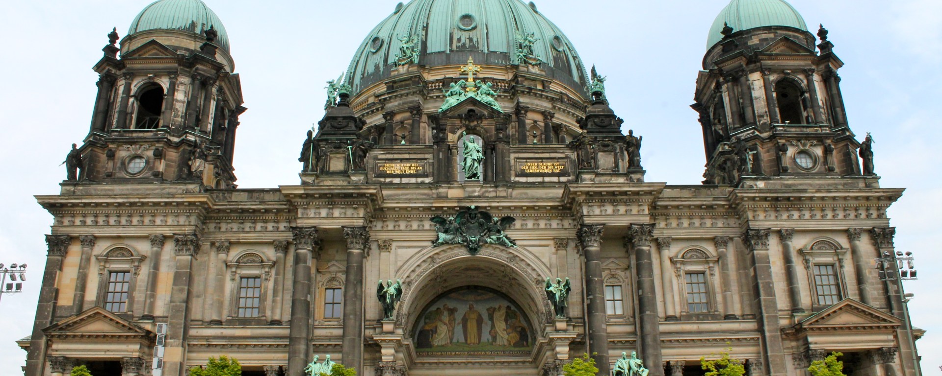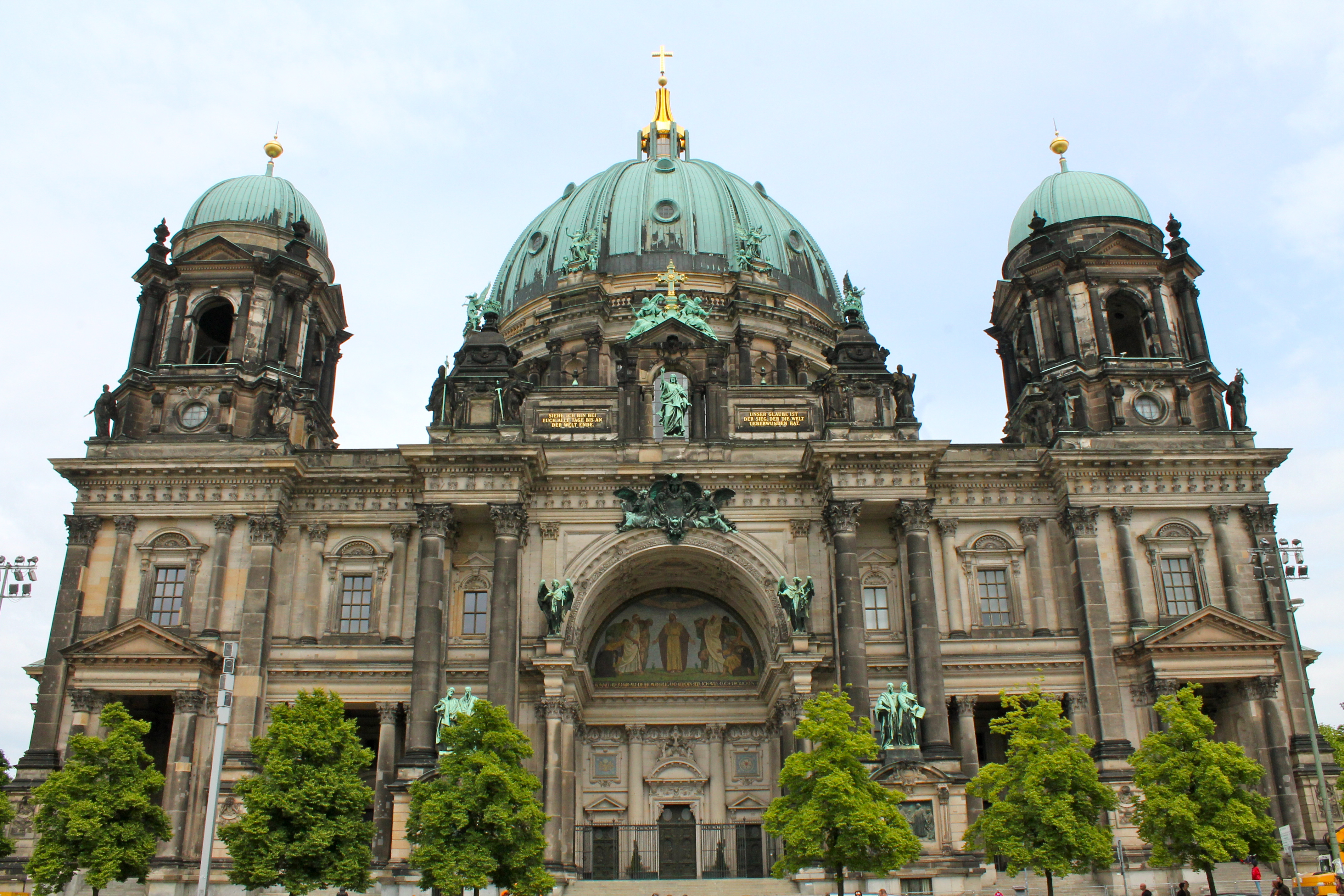 Noting the restaurant we had dinner plans at later, we continued along Schlobplatz, across the River Spree and Museum Island, to the Berliner Dom! Setting the theme for Berlin, the Dom was literally surrounded by cranes. Intel’s construction site still has the most cranes that I have ever seen in one place– 34 at its peak– but Berlin is easily a close second. Check out this view!