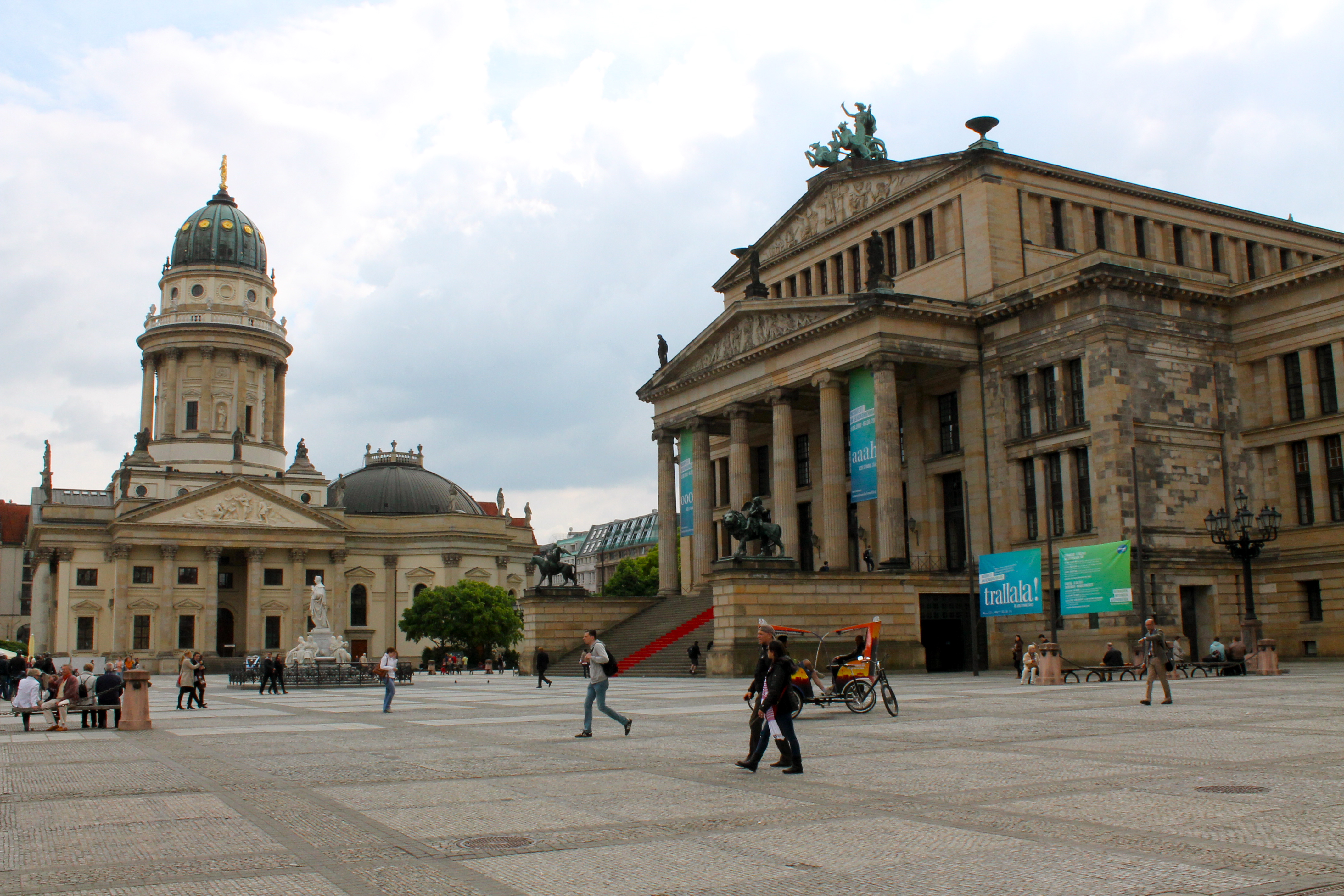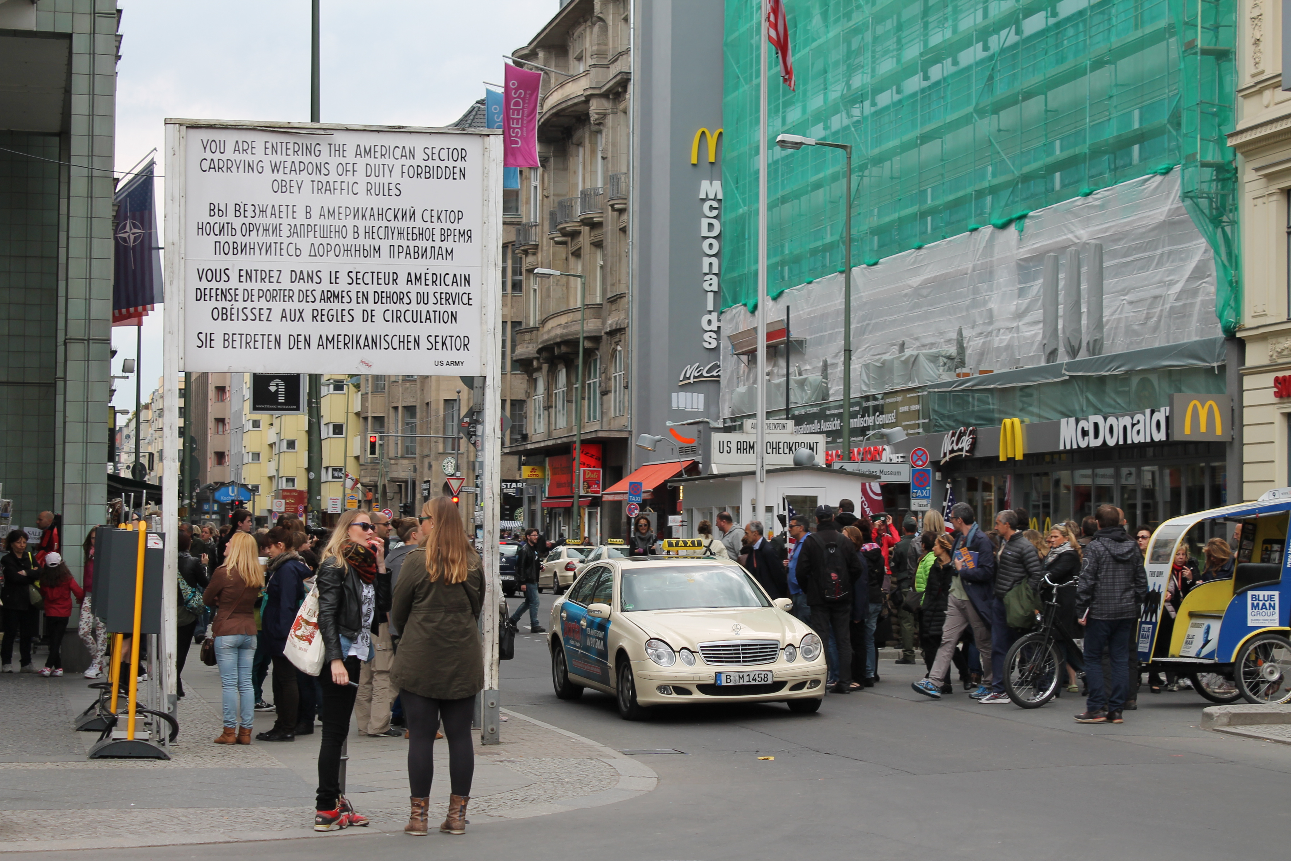 We continued then along Unter den Linden, one of Berlin’s main boulevards, stopping at the University and browsing a book sale, before crossing through Bebelplatz and ending up at the matching French & German Cathedrals. Then we walked along Friedrichstadt to the Berlin Wall Memorial and Checkpoint Charlie. Having written my senior thesis (in high school) on the influence of Soviet Communism on the writings of George Orwell, I have always been very interested in happenings of Eastern Europe. However, prior to visiting the Berlin Wall, I hadn’t realized just how recently everything had taken place. Heck, Berlin was only made the capital of Germany in 1991! No wonder everything was still so heavily under construction and hence all of the cranes.