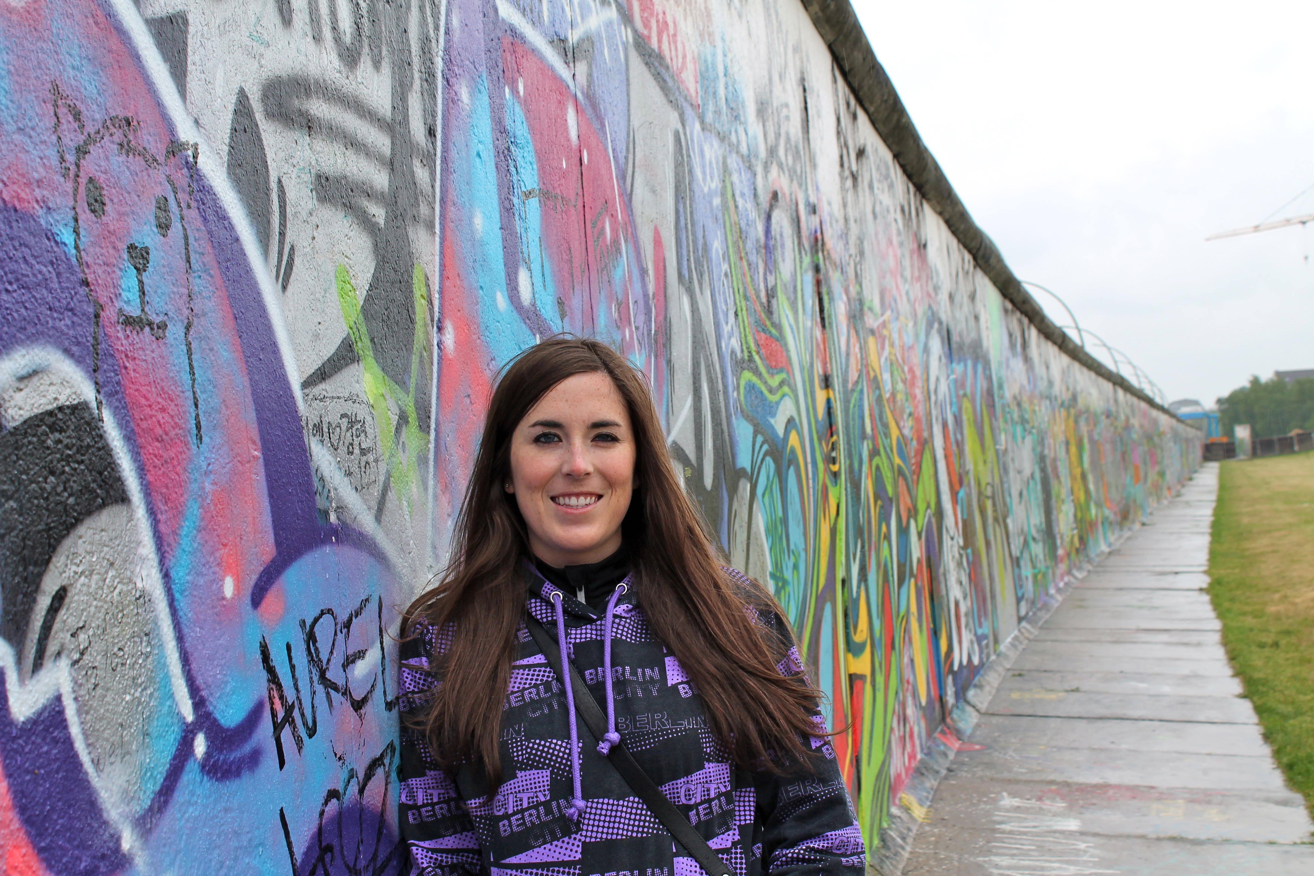 The main Berlin Wall Museum & Memorial. Most sections of the wall look like this, unlike the decorated East Side Gallery. (While I tried to look cute in front of the East Side Gallery, this is how I actually looked walking around Berlin– hoodie up and tied tightly around my face!)