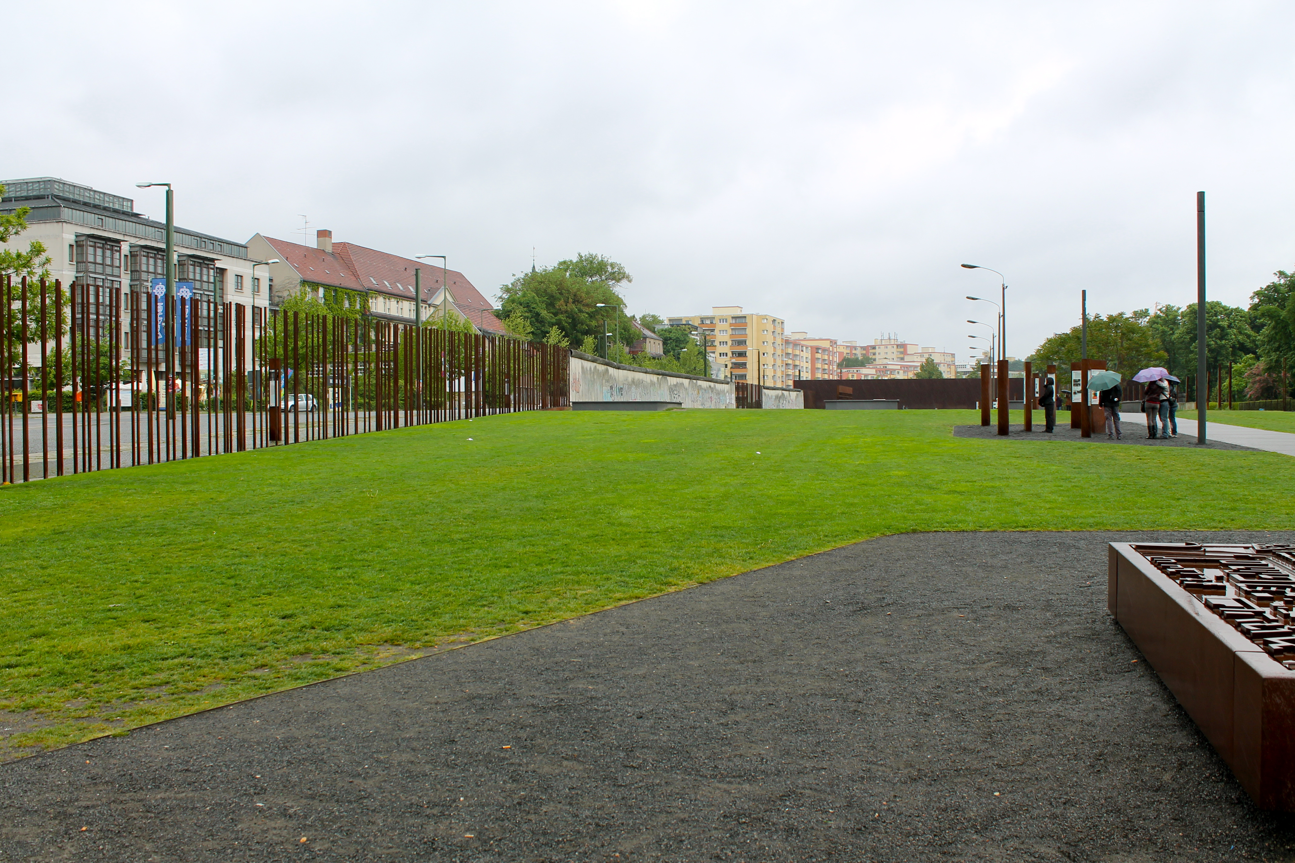 Open exterior part of the museum.  Berlin had a fondness for free, outdoor museums that are open to the public.  They are very upfront about their dark history and not at all shy about displaying it in respectful ways.  It's almost like the city is putting it all out there, so that they can be done with it and move forward, rather than try to hide it or ignore it.