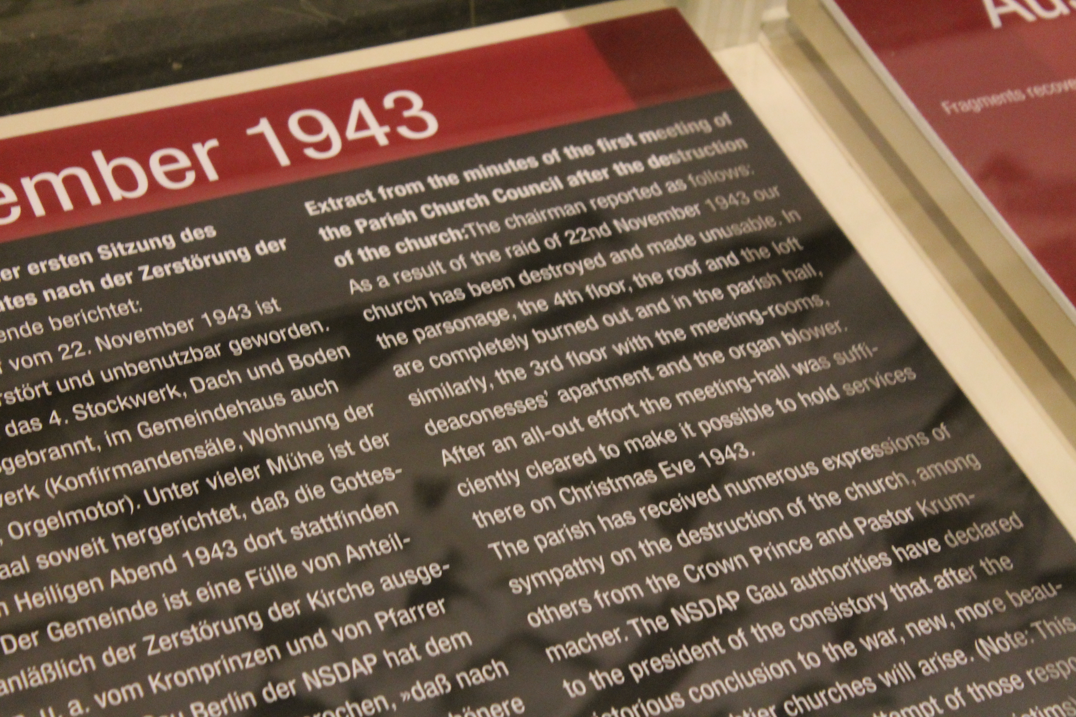 Currently, they are creating a brand new church attached to the old, bombed-out bell tower remains.  Still, you can walk into the base of the old bell tower and see the incredible detail.