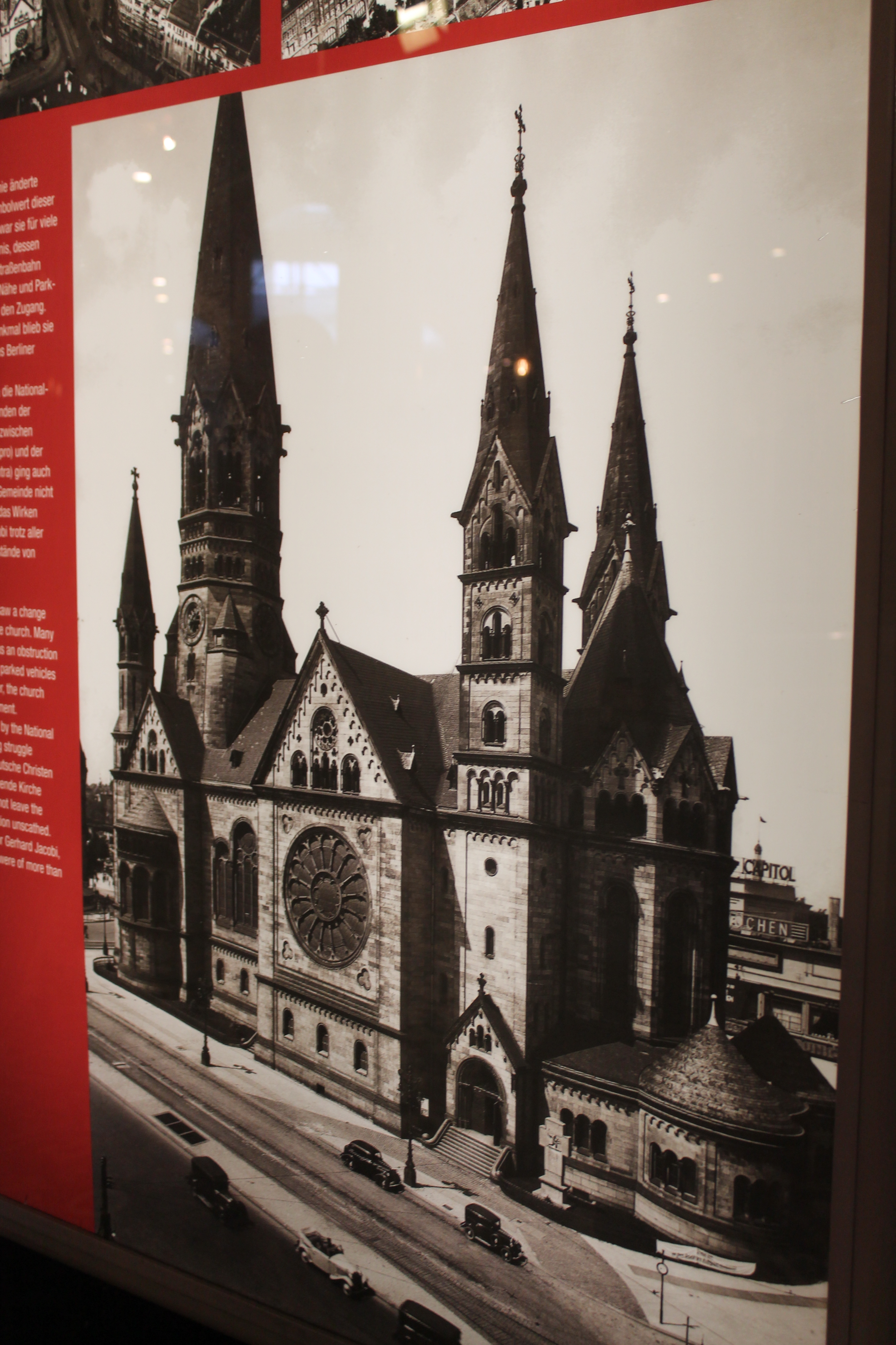 We headed next toward the Kaiser Wilhelm Memorial Church, an iconic Berlin site.  The church was bombed during WWII and was in the middle of the downtown city, a glorious memorial to Germany’s Kaiser Wilhelm.  Following the bombing, all that remained was its lonely standing bell tower.  Despite this, just a month or so after the bombing, the church held Christmas Mass as normal.  Worshippers stood beneath the bell tower, completely open to the surrounding city.  I believe the memorial today stands as a symbol of Berlin’s terrible past, but everlasting resilience and bright future.