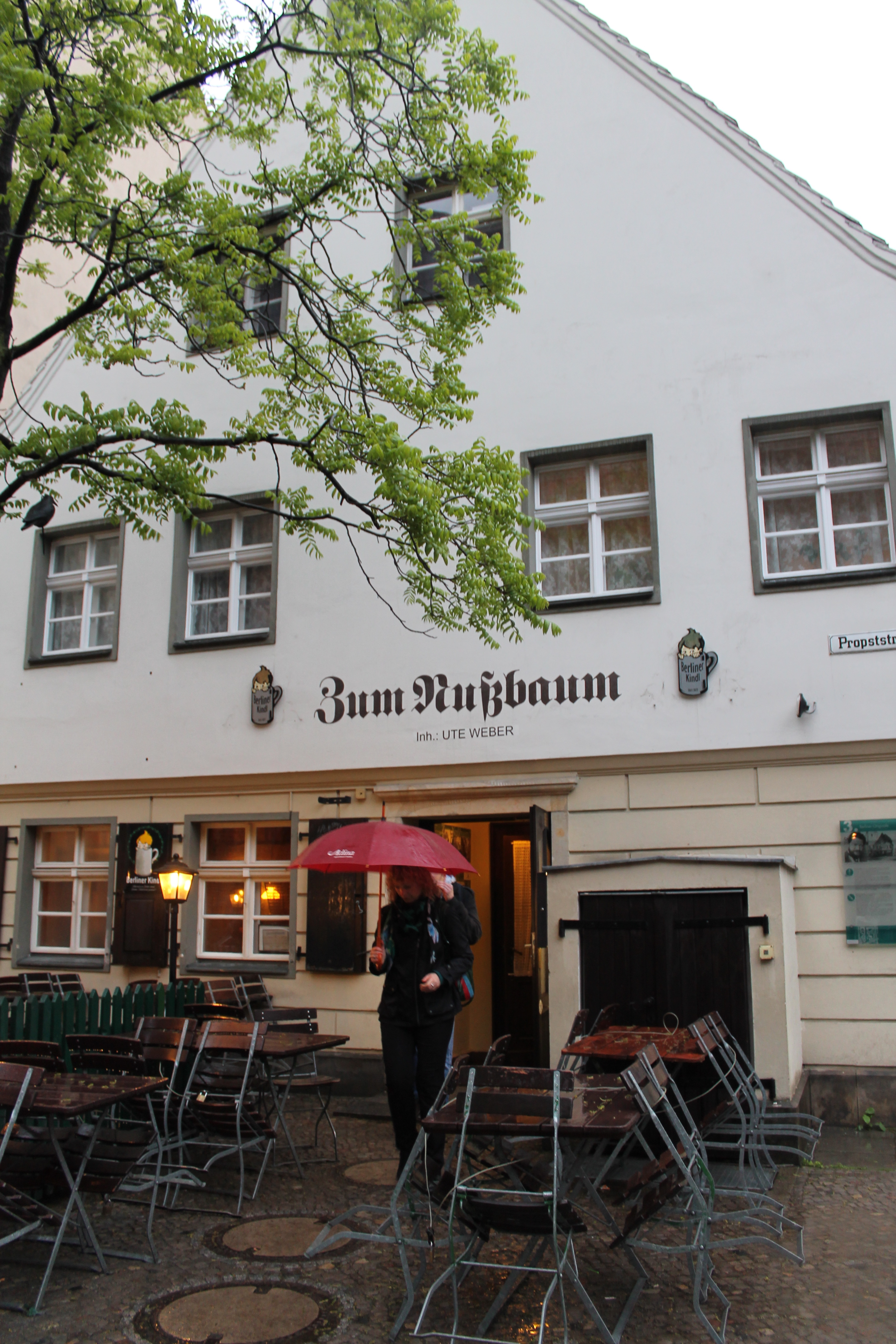 Preparing for an early morning, we left the museum and headed straight back toward Alexanderplatz to grab dinner at Zum Nuzbaum, a historic pub.  I had potato soup again!  Of course.  We had peeled off our many layers when we arrived, with hopes that they would dry while we were eating…. but, nope.  Instead, they were still soaping wet– I’m talking, you could wring water out of them!– when we left for the half mile walk back to the hotel.
